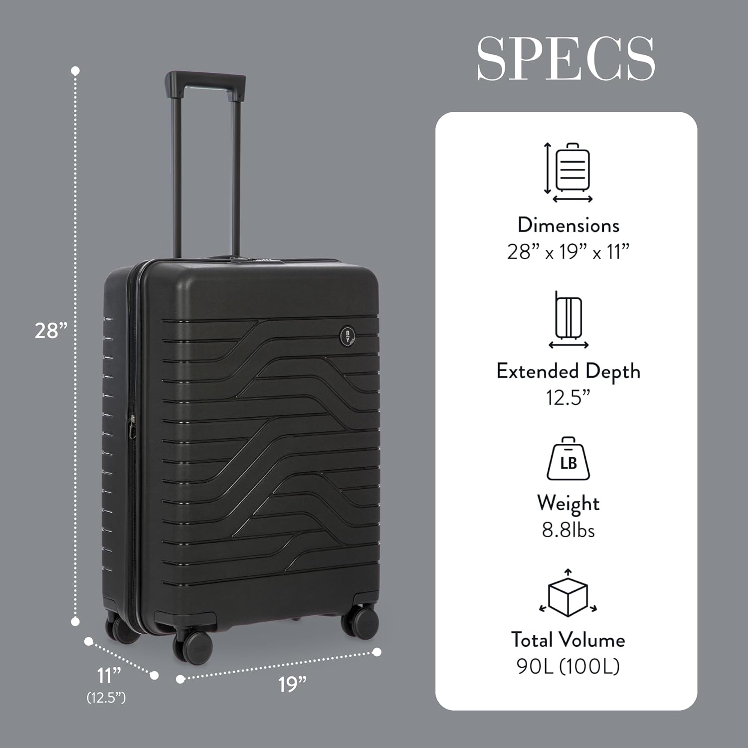Bric's 28" Expandable Spinner Suitcase - Travel Luggage with TSA-Approved Lock and Hard Shell Exterior - B|Y Ulisse - Black