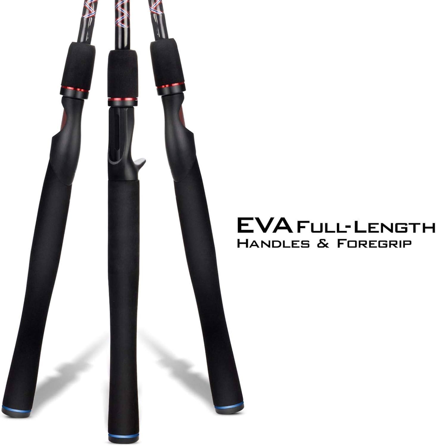 - Durable and Comfortable Full-Length Eva Handles – The full-length EVA handles on every spinning rod and baitcasting rod in the Brutus fishing rod series deliver all day long comfort and are the most durable handles made today. This special formula high-strength EVA is easy to clean, provides cushioning and doesn’t get cold or crack when the temperatures drop. Each fishing rod also uses the same EVA material in the foregrip to give you additional leverage for landing large fish.