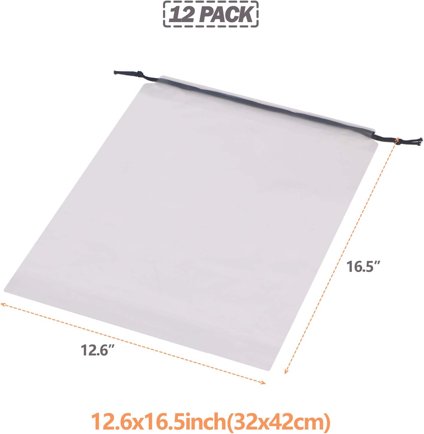 - Large size: 16.5” x 12.6”. Set of 12. Perfect size for womens and mens shoes covers. Ideal for packing dance shoes, flip flops, sneakers, clothing, clothes, underwear, handbag, purse, hiking tennis golf shoes works as travelling organizer in your luggage or suitcase.