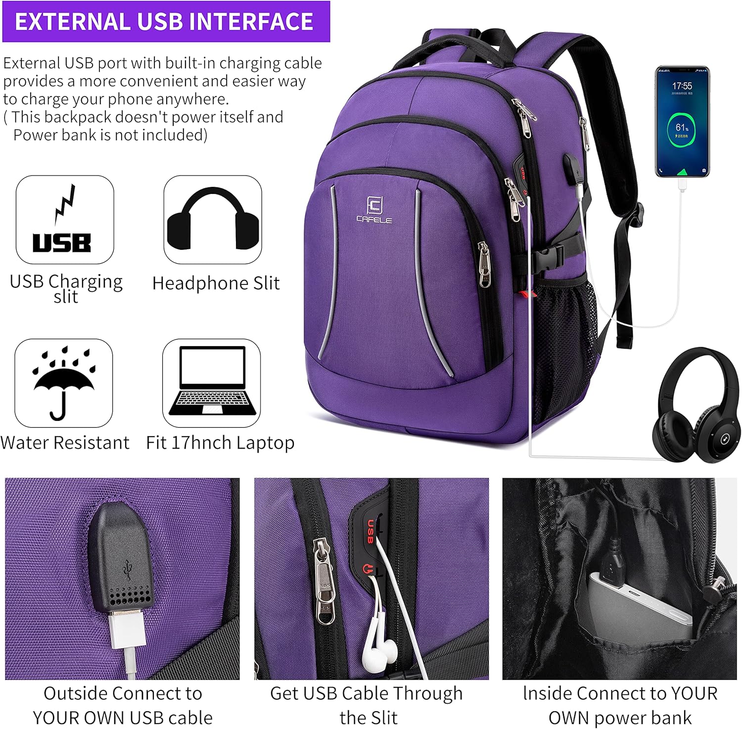 Travel Laptop Backpack,17.3 Inch Large Capacity College School Bookbags,RFID Anti Theft Pocket,Durable Water Resistant Backpacks Computer bagpack for Women Girls Teenagers Casual Daypack,Purple