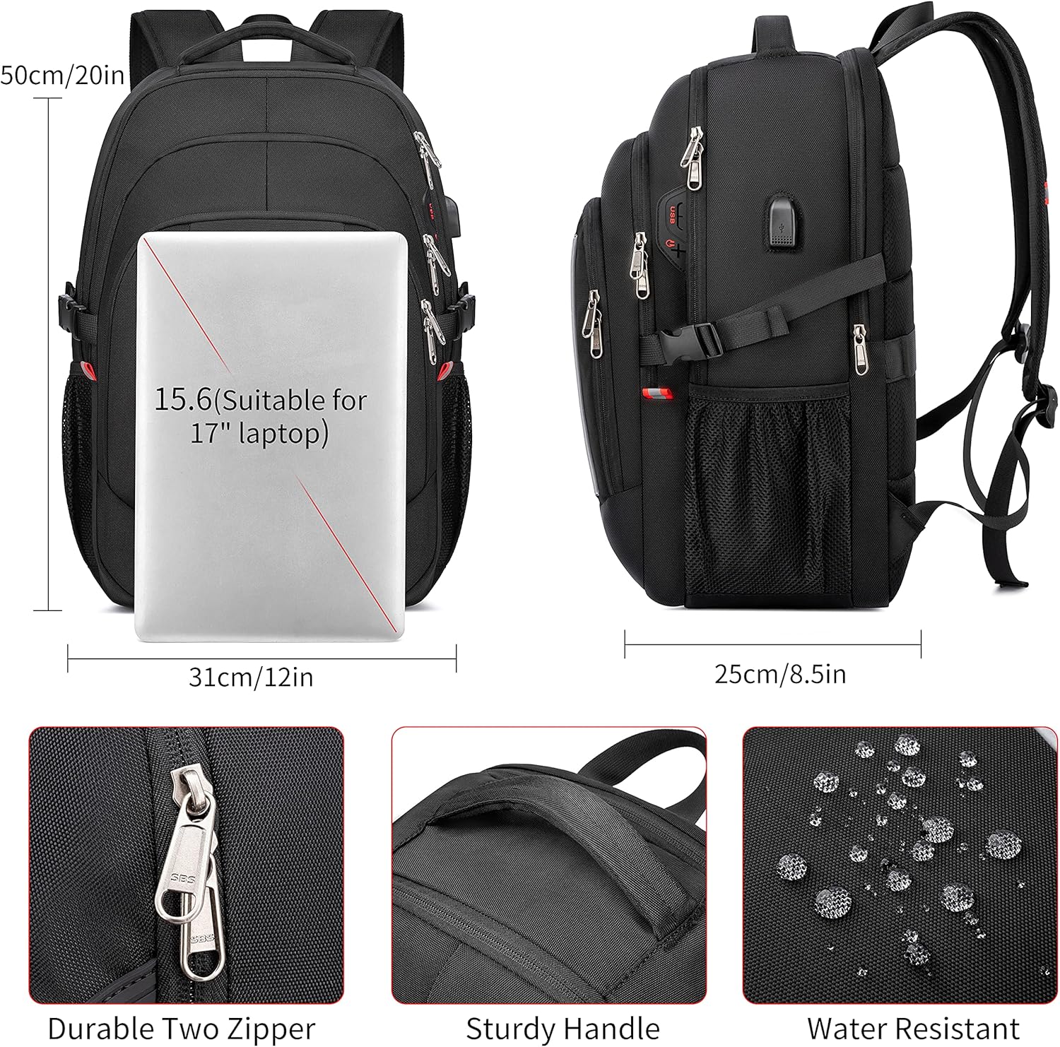 - DIMENSION & DURABLE MATERIAL - Size of extra large college backpack:12.6 *7.8*19.6(inches), perfect to throw under your seat on an airplane when you are traveling or on business trip.Separate padded laptop compartment fits most 13, 14, 15, 15.6, 16, 17, and up to 17.3 inch laptop/Ipad/Computer.The business computer backpack made from high quality polyester fabric shockproof with high density nylon lining for better TEAR & WATER RESISTANT and Lightweight backpack.Age:over 6 years old.