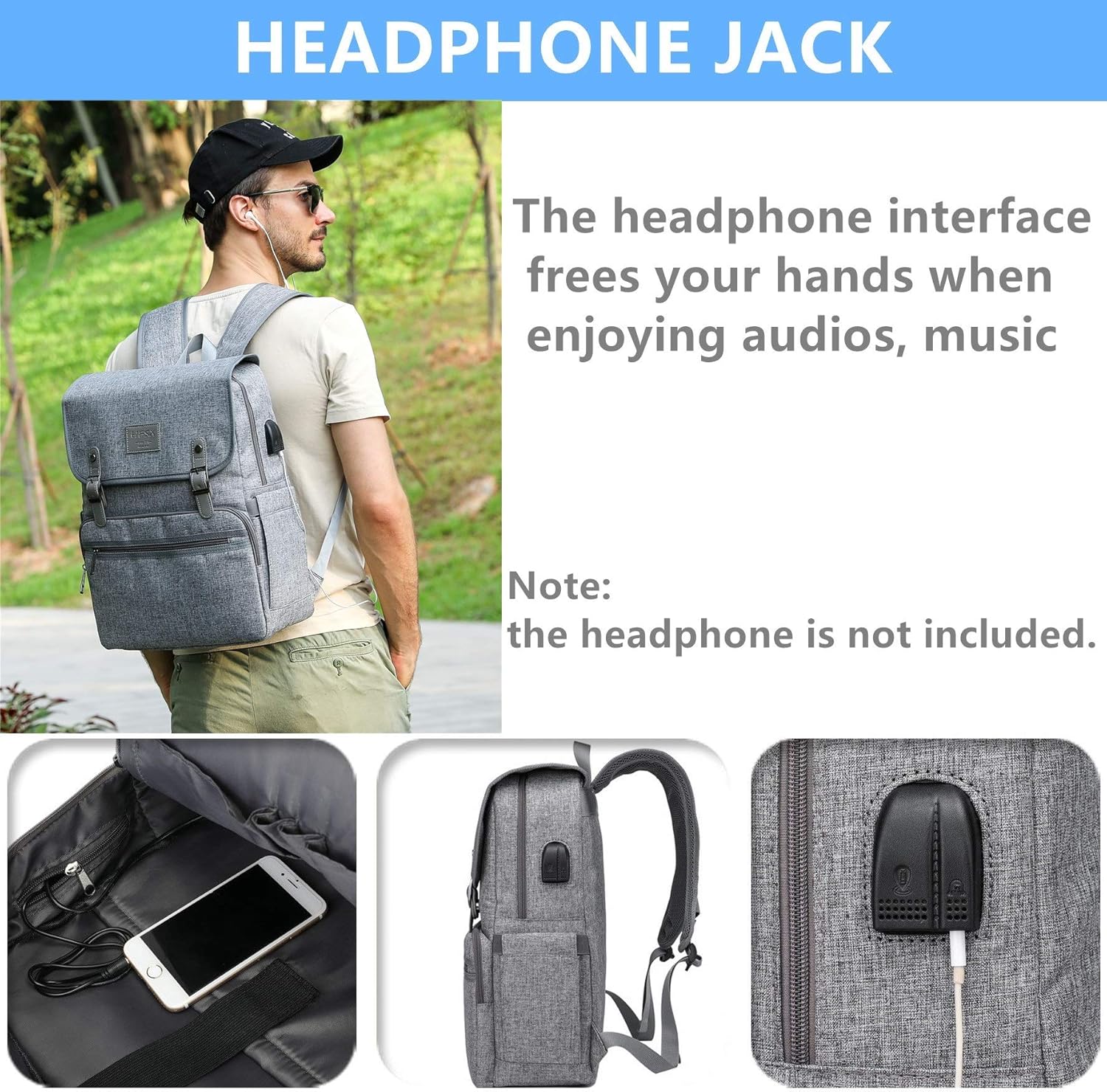 HFSX Laptop Backpack Men Women Vintage Backpack Bookbag College Backpacks Stylish Backpack Grey Fits 15.6 Inch Laptop