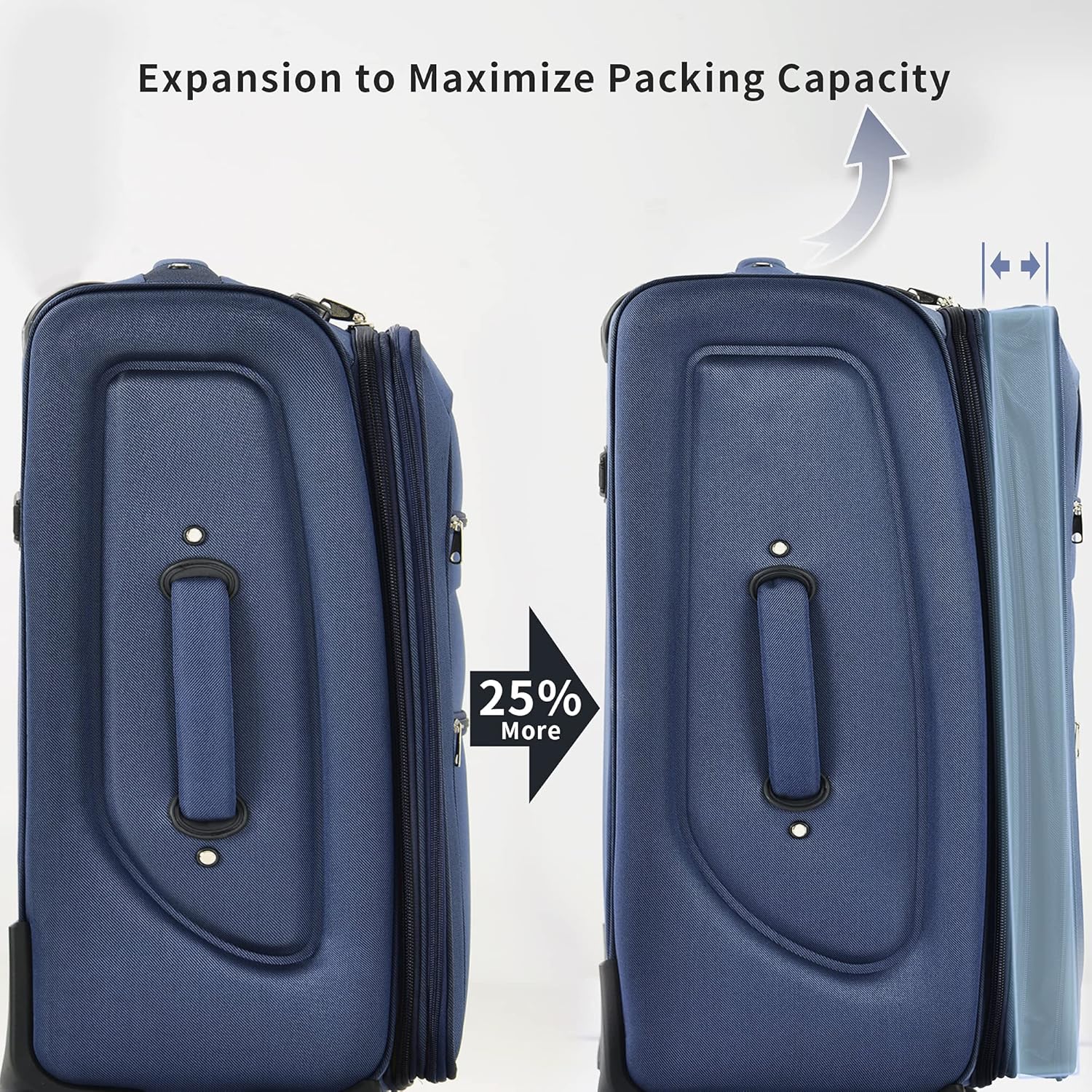 Merax Softside Luggage Set Softshell Lightweight 3 Piece Spinner Suitcase 22" 26" 30" Deep Blue