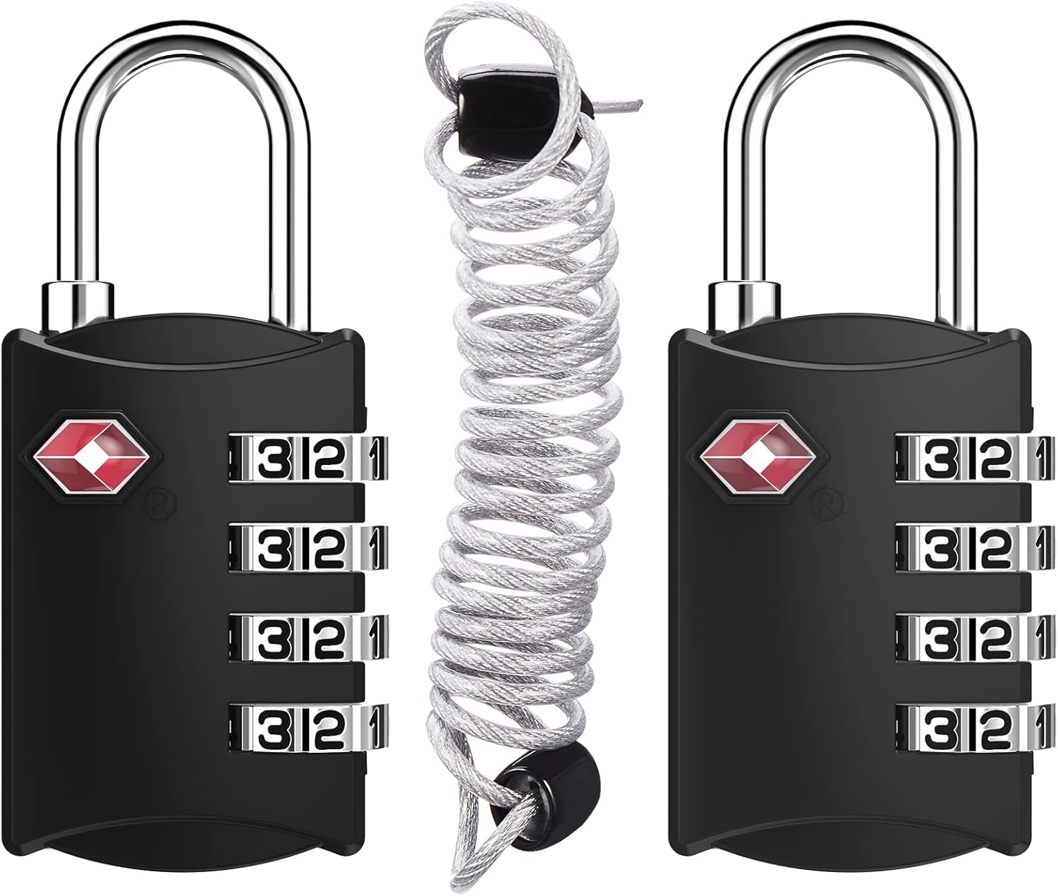 ZHEGE Travel Locks 2 Pack, TSA Locks for Luggage with Flexible Cable (30 Inch) for Gym, Suitcase, Backpack, Baggage, Easy Read Dial with Alloy Body (2 Pack, Black)