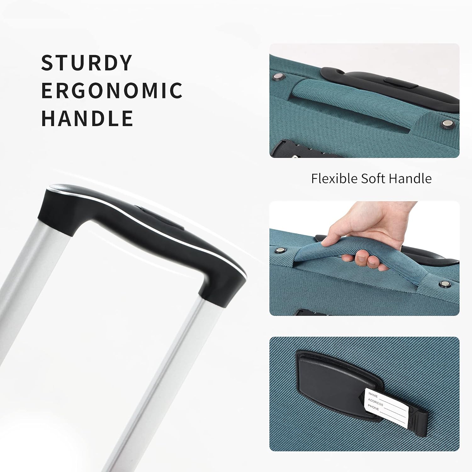 Merax Softside Luggage Set Softshell Lightweight 3 Piece Spinner Suitcase 22" 26" 30" New Green
