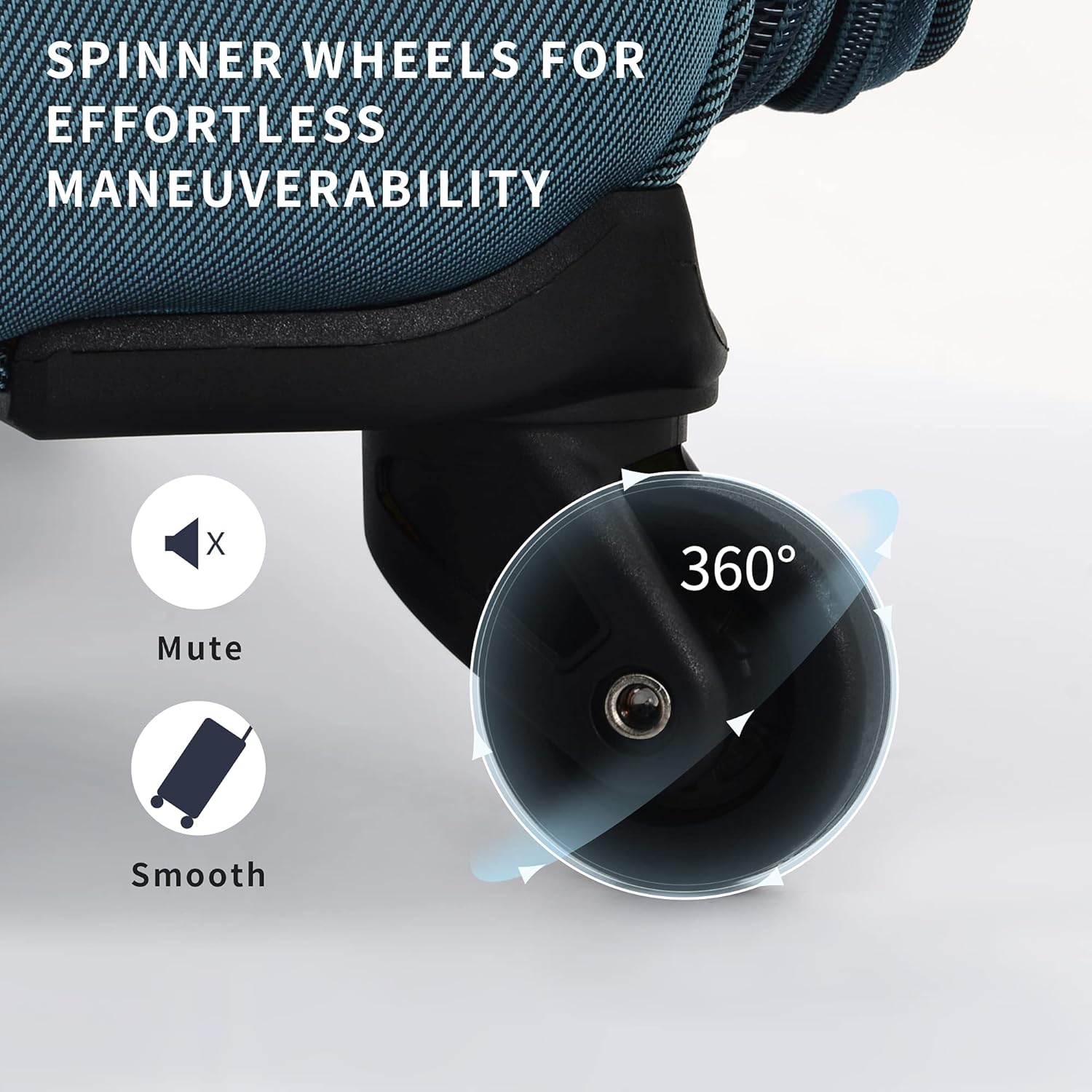 - Telescopic handle with contoured grip for maximum comfort and ease of use. 360 degree spinner wheels provide enhanced shock absorption and effortless maneuverability, and the lightweight frame ensure exceptional functionality.