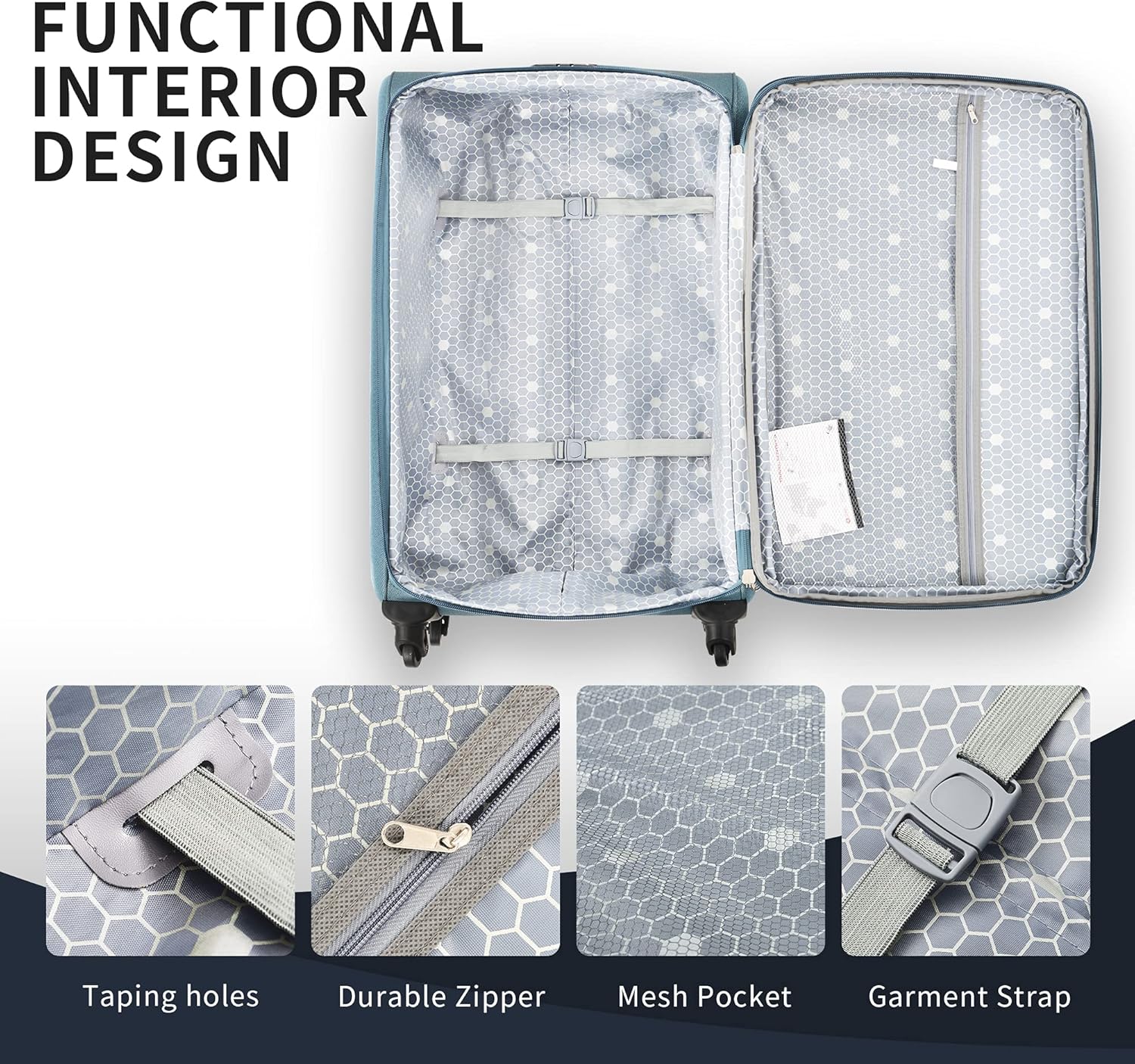 - The super lightweight softside luggage is made of premium 100% Polyester fabric with reinforcements throughout, which is lightweight yet durable, water and stain resistant for long-lasting usage