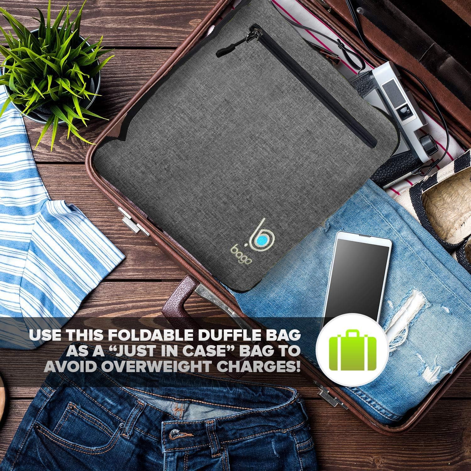 Bago Large Foldable Duffel Bags for Traveling Women & Men - 80L Packable Duffle Bag for Travel with Shoe Compartment - Water Repellant, Heavy Duty, Lightweight Folding & Collapsible (SnowGray)