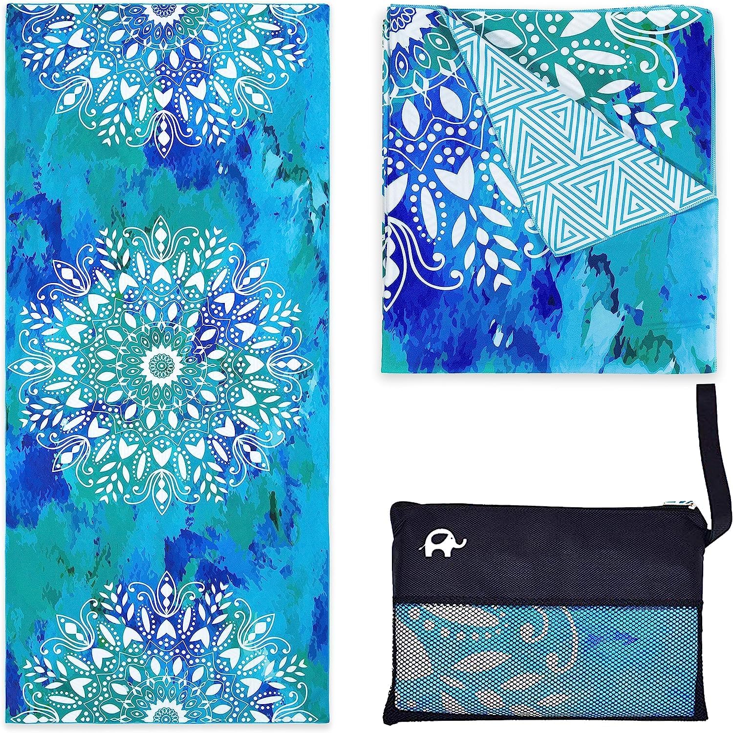 Elite Trend Quick Dry Towel Large 63x31 Inch - Microfiber Beach Towel - Perfect for Beach, Travel, Swimming, Pool, Yoga, Hiking, Camping - Lightweight, Fast Drying, Compact for Adults (Mandala Blue)