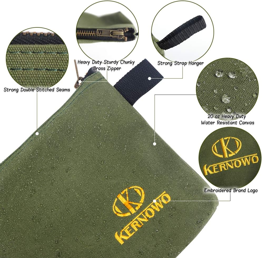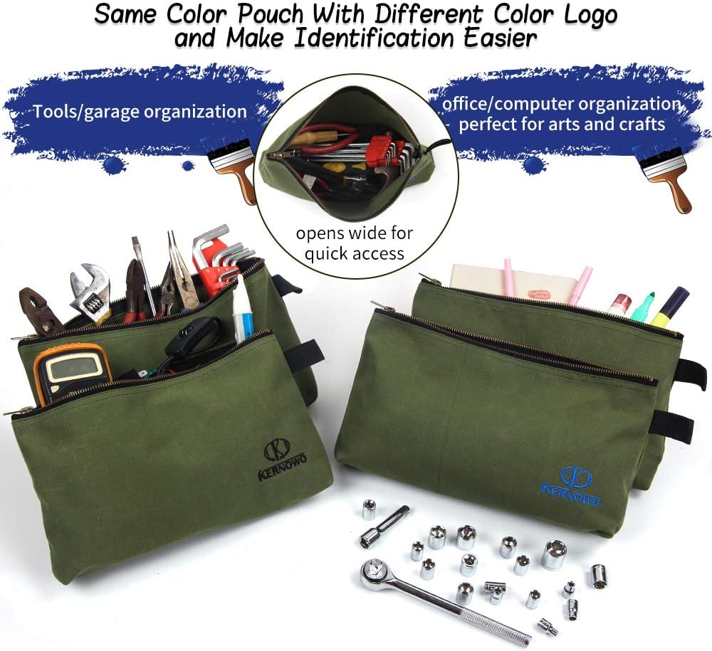 KERNOWO 4 Pack Upgrade Zipper Canvas Tool Pouch, 20 oz Heavy Duty Tool Bag, Water Resistant Utility tools Organizer, 12.75 X 8 X 2.25 inch Spacious Storage Pouches with Dependable Brass Zippers