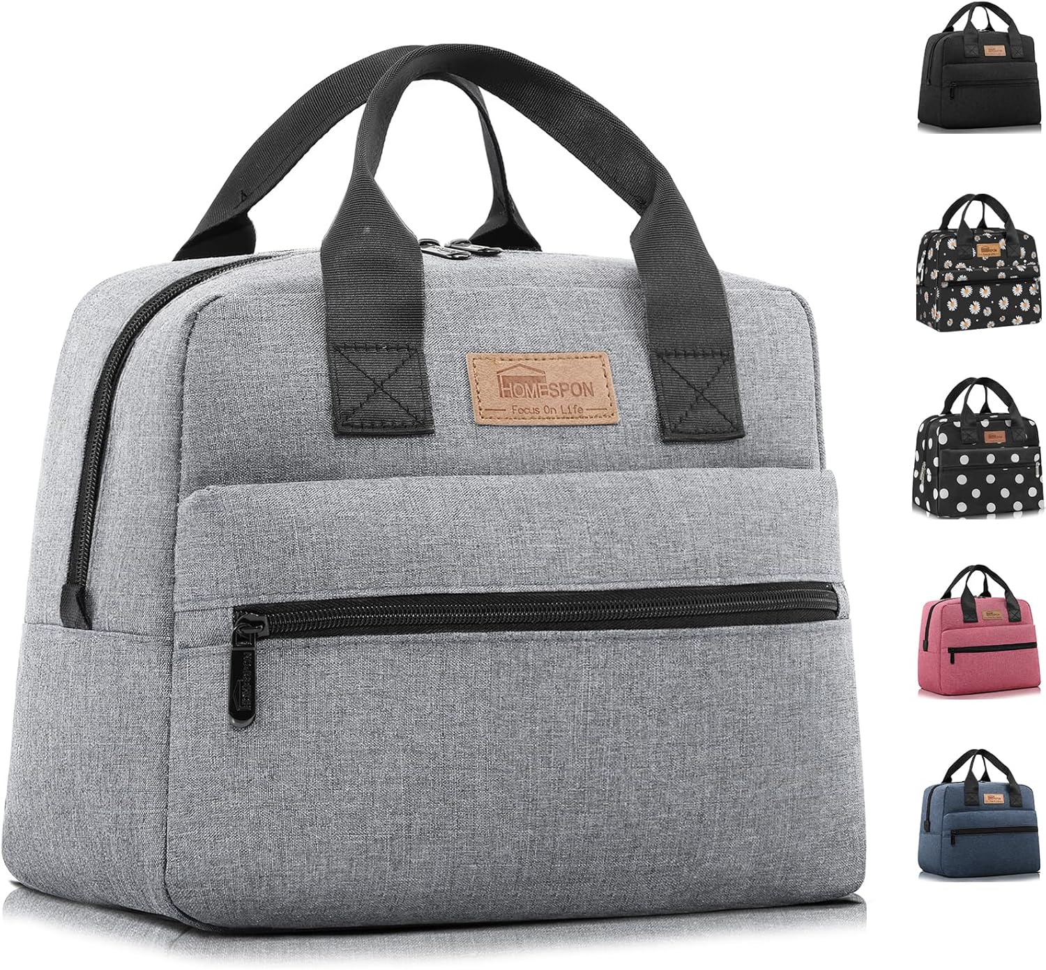 HOMESPON Insulated Lunch Bag for Women Men Lunch Box Cooler Lunch Tote for Work Picnic (Grey)