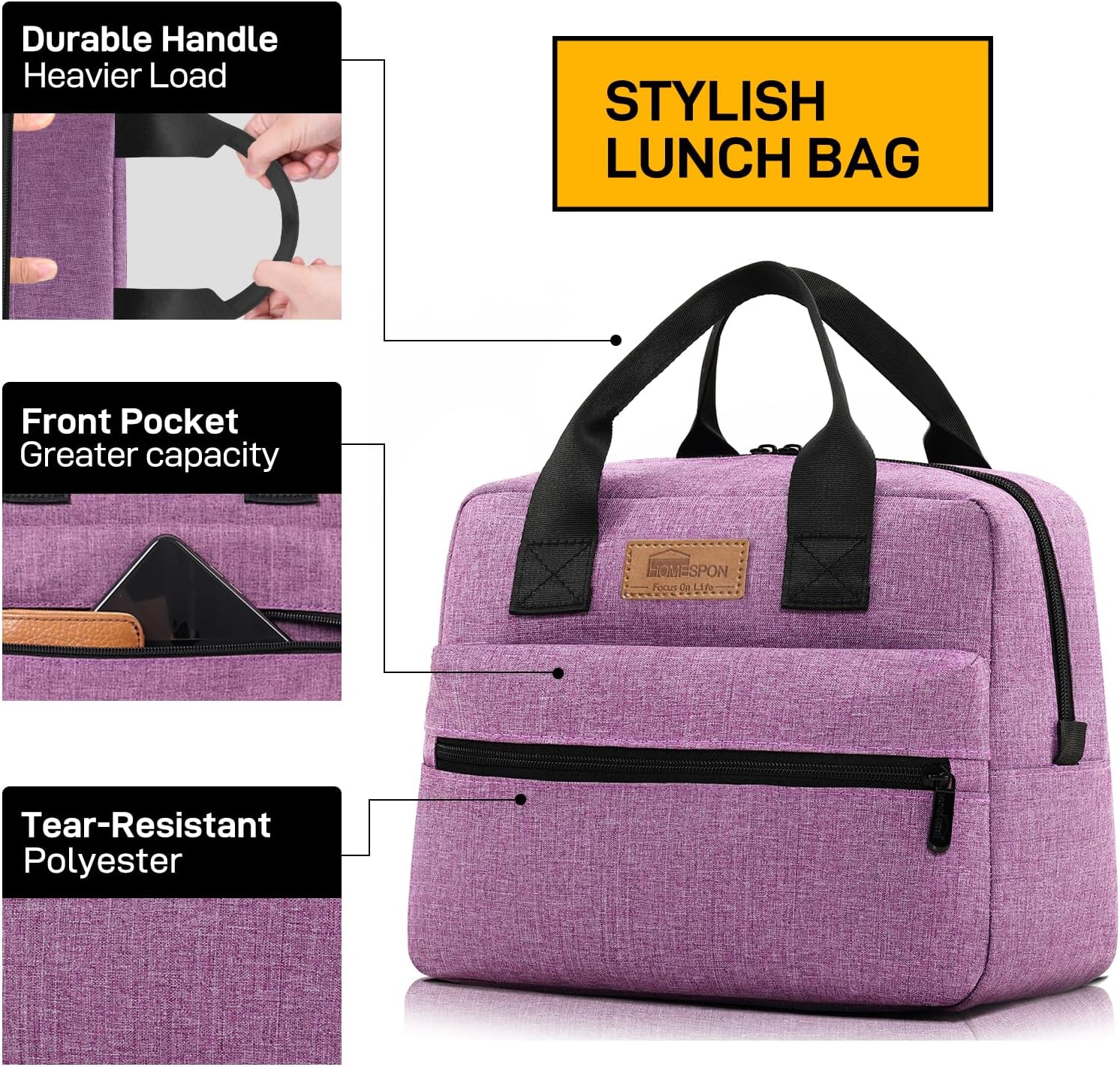 HOMESPON Insulated Lunch Bag for Women Men Lunch Box Cooler Lunch Tote for Work Picnic (Purple)