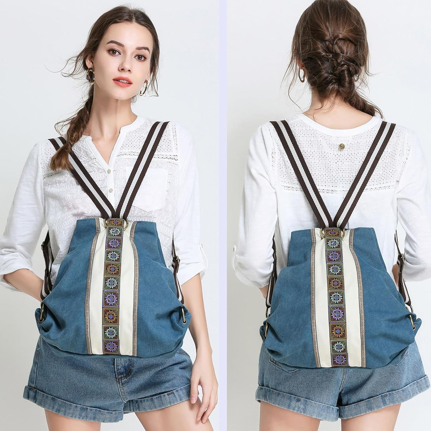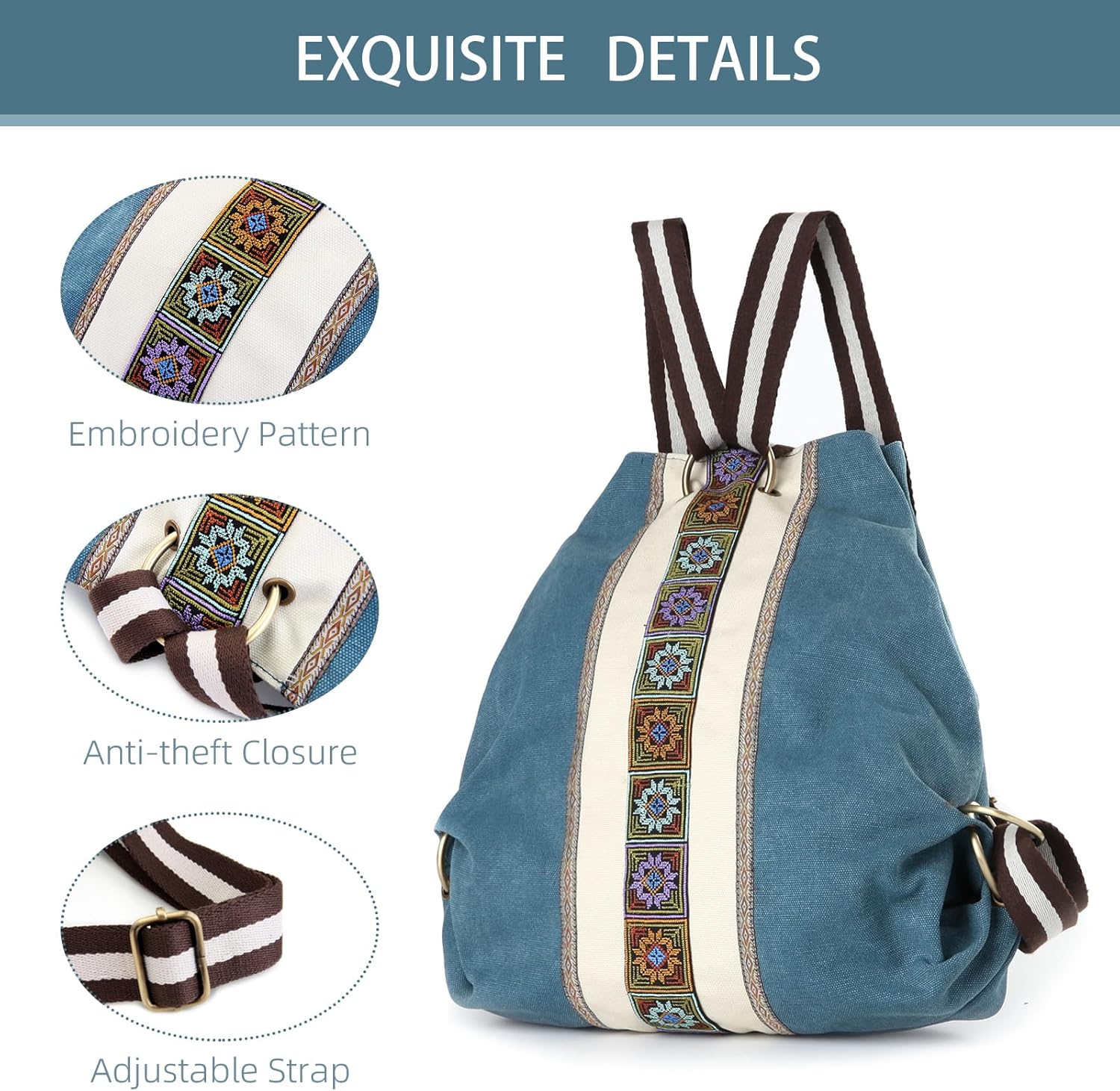 Goodhan Women Canvas Backpack Daypack Casual Shoulder Bag, Vintage Heavy-duty Anti-theft Travel Backpack (Green Blue)
