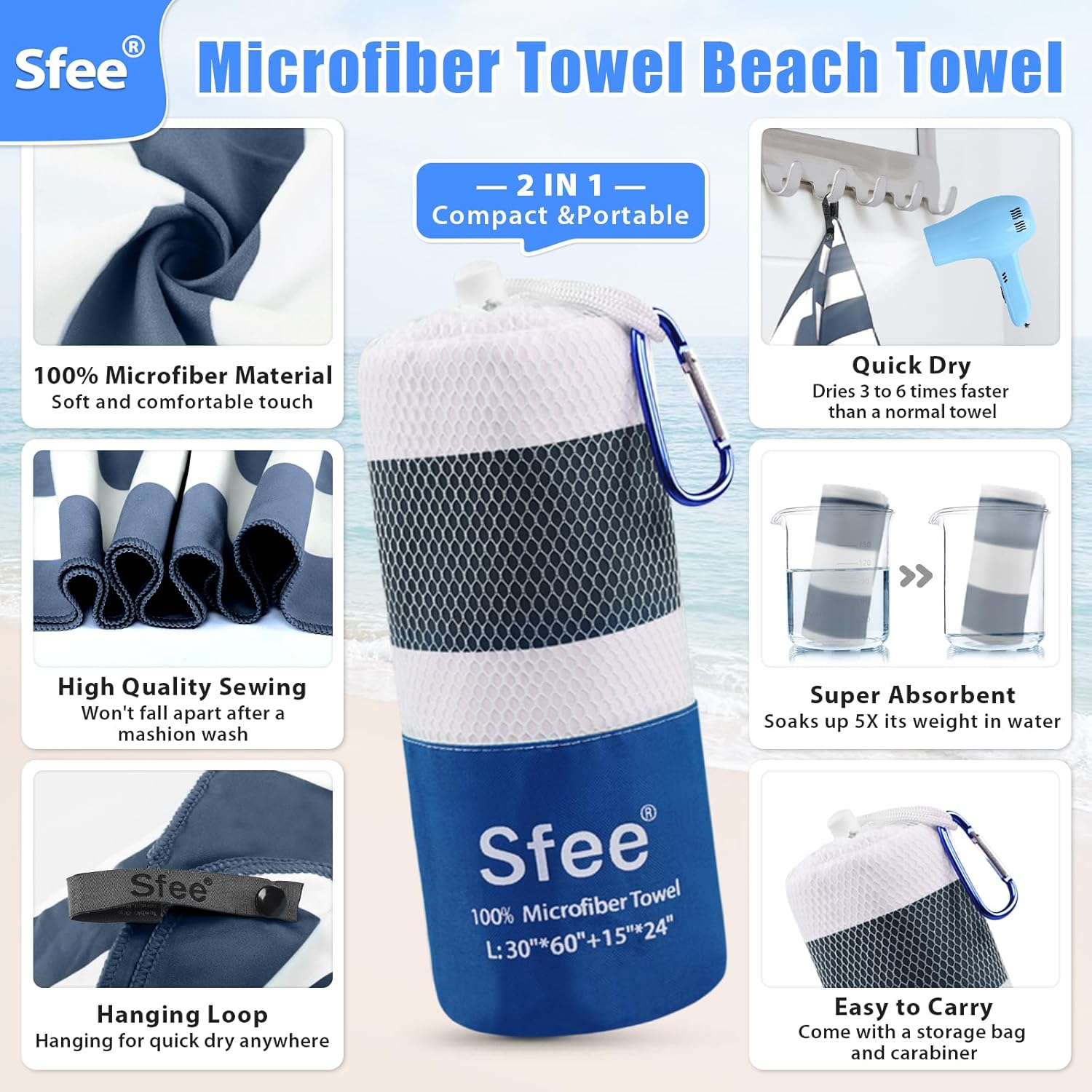Sfee 2 in 1 Microfiber Beach Towel, Quick Dry Towel Camping Towel Travel Towel Super Absorbent Compact Lightweight Sports Gym Towels Set for Beach, Gym, Hiking, Pool, Backpacking, Bath, Yoga