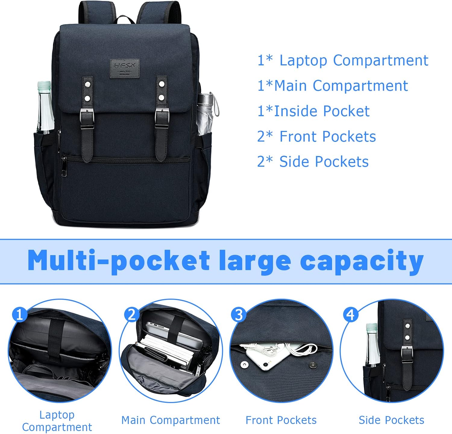 HFSX Anti Theft Laptop Backpack Men Women Business Travel Computer Backpack College Bookbag Stylish Water Resistant Vintage Backpack with USB Port Fits 15.6 Inch Laptop Blue