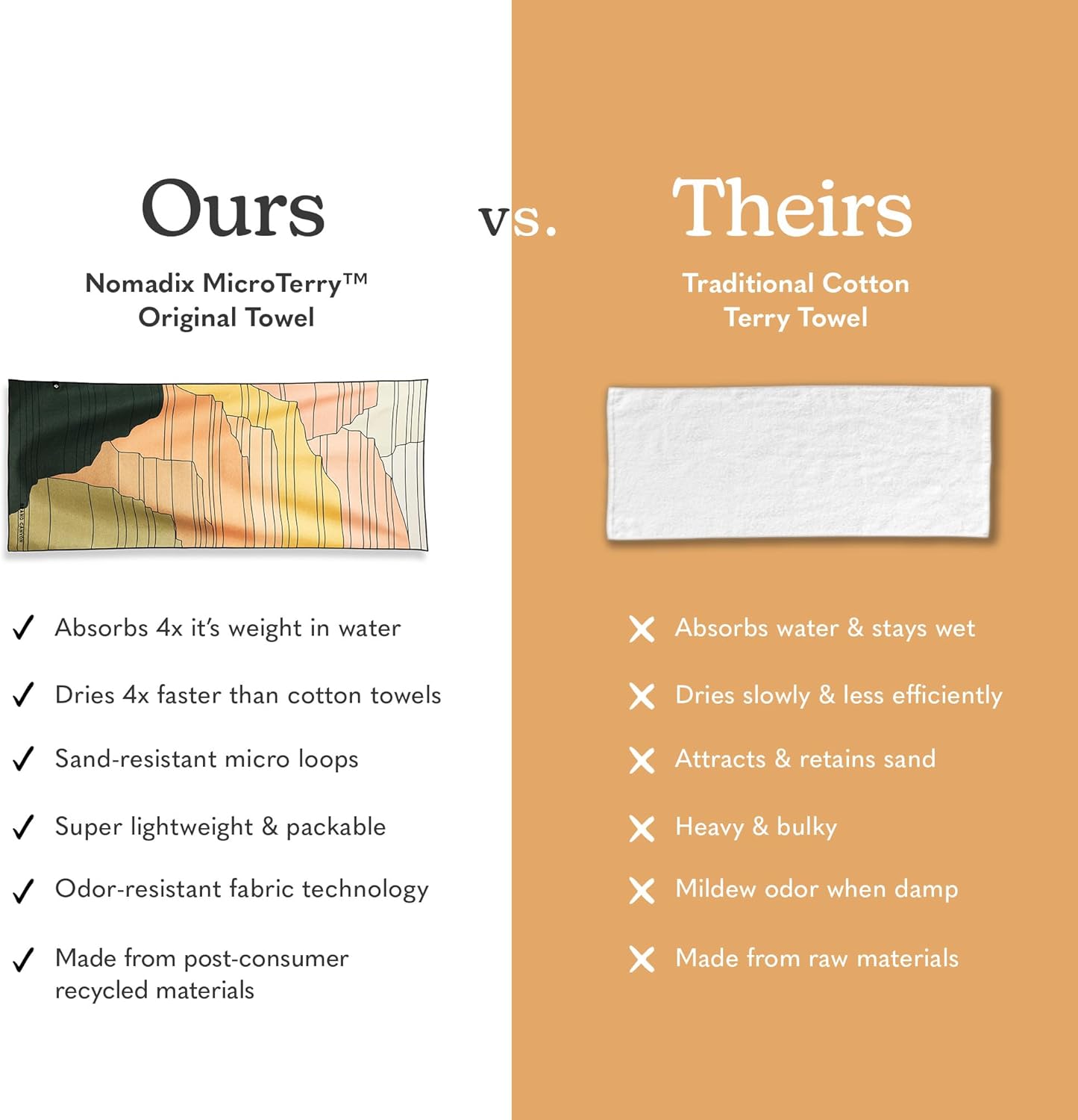- Super Absorbent MicroTerry Fabric: Our MicroTerry Fiber is made with small loops, which means that it is super absorbent, absorbing 4x more than regular cotton towels.
