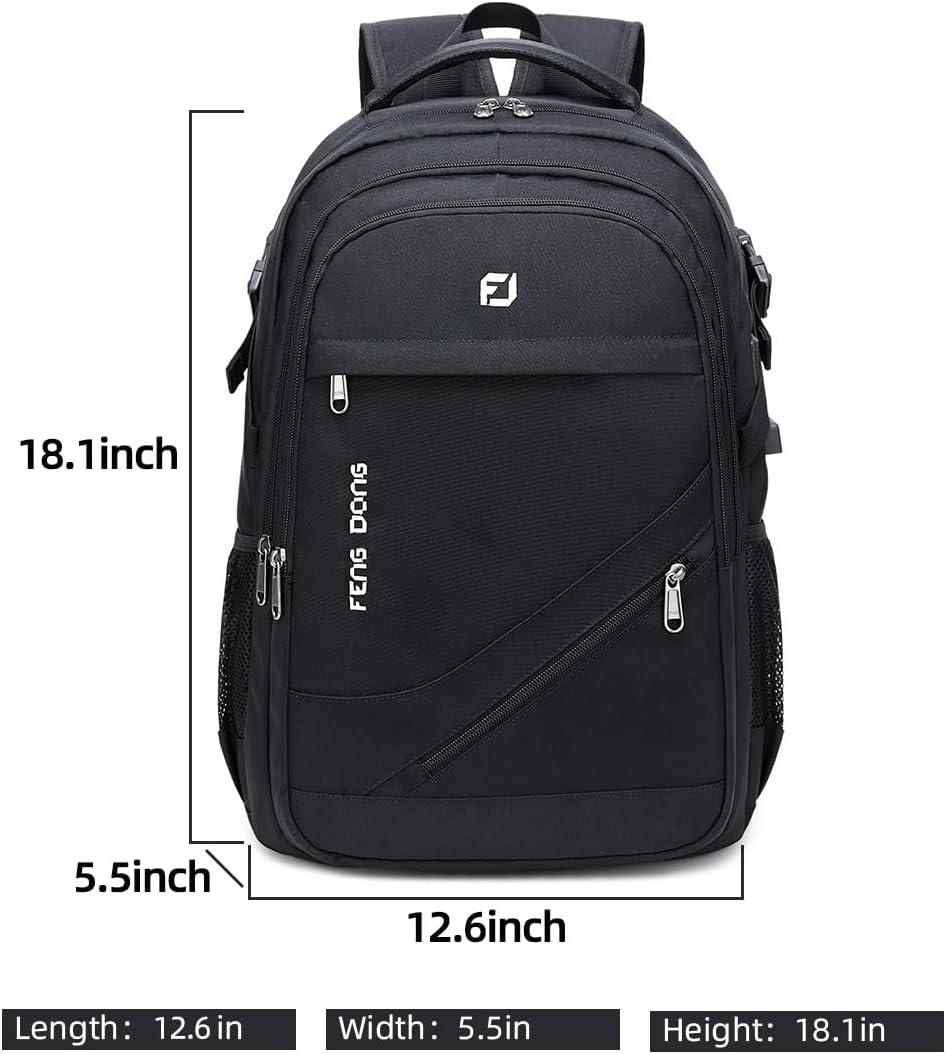 FENGDONG Durable Waterproof Travel Laptop Backpack 17.3 inch,Large College Backpack Bookbag for Men & Women Business Backpack with USB Charging Port and Headset Port Black