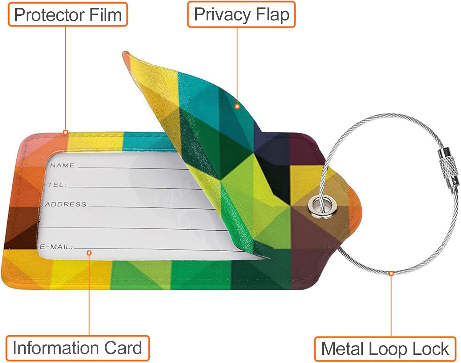 2 Pack Luggage Tag for Suitcase, Cute Unique Leather Suitcase Tags Identifiers with Privacy Name Address Labels & Durable Steel Loop for Women Men Travel