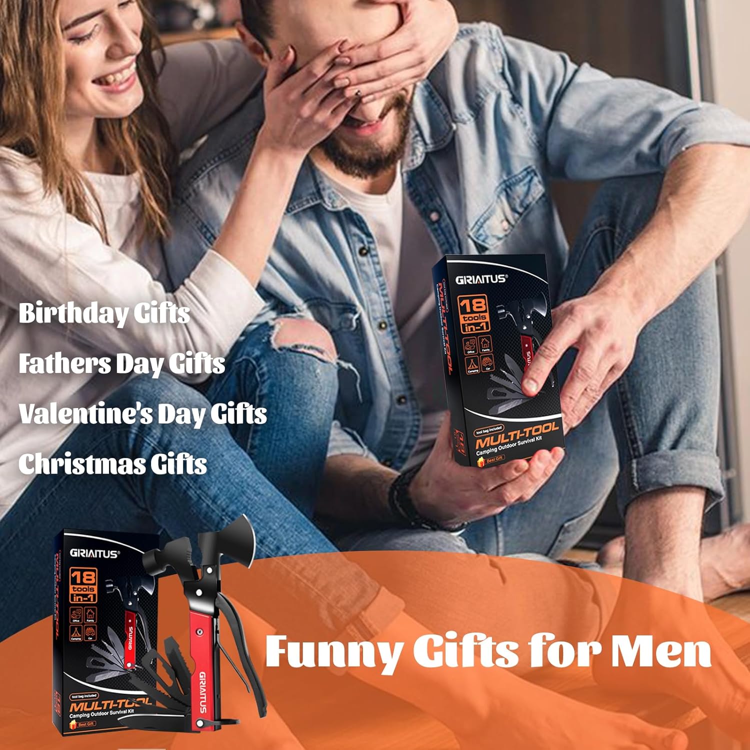 Multitool Camping Accessories Gifts for Men Survival Gear 18 in 1 Camping Multi Tool with Axe Hammer Saw Screwdrivers Pliers Bottle Opener Stocking Stuffers Gifts for Men Dad Him