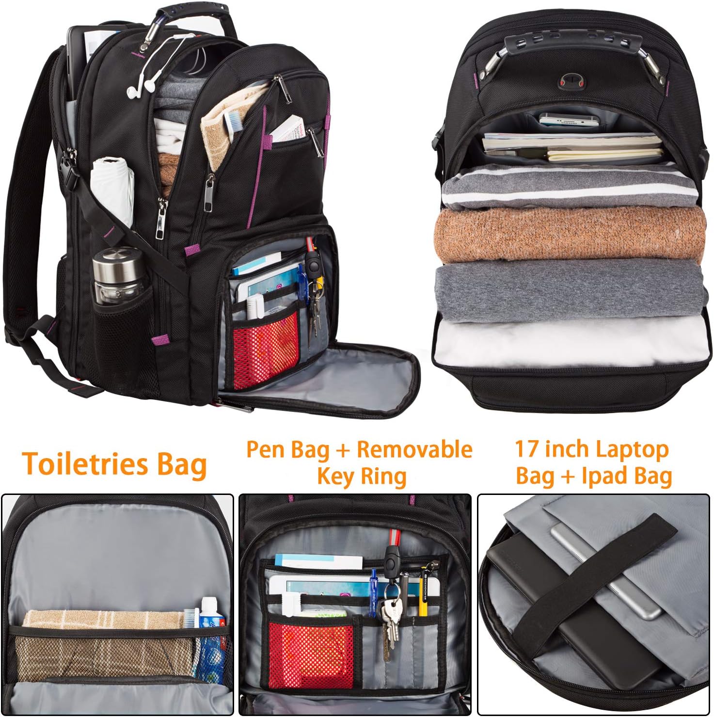 LTINVECK Extra Large Backpack,TSA Friendly Travel Laptop Computer Backpack for Men Women with USB Charging Port,RFID Water Resistant Big Business Backbag Fits 17.3 Inch Laptops,Purple