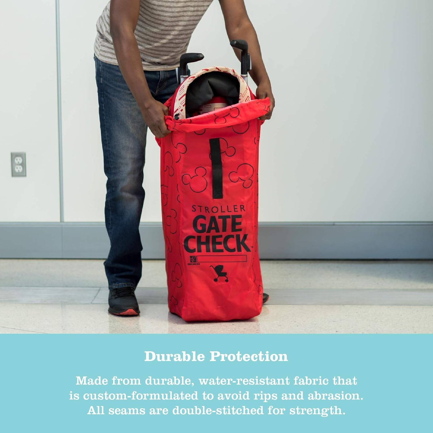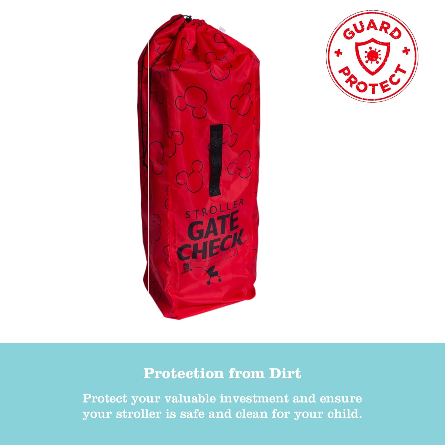 J.L. Childress Disney Baby Gate Check Bag for Umbrella Strollers - Travel Bag for Airplane, Fits Most Single Umbrella Baby Strollers, Airport Accessories for Gate Check - Mickey Mouse, Red