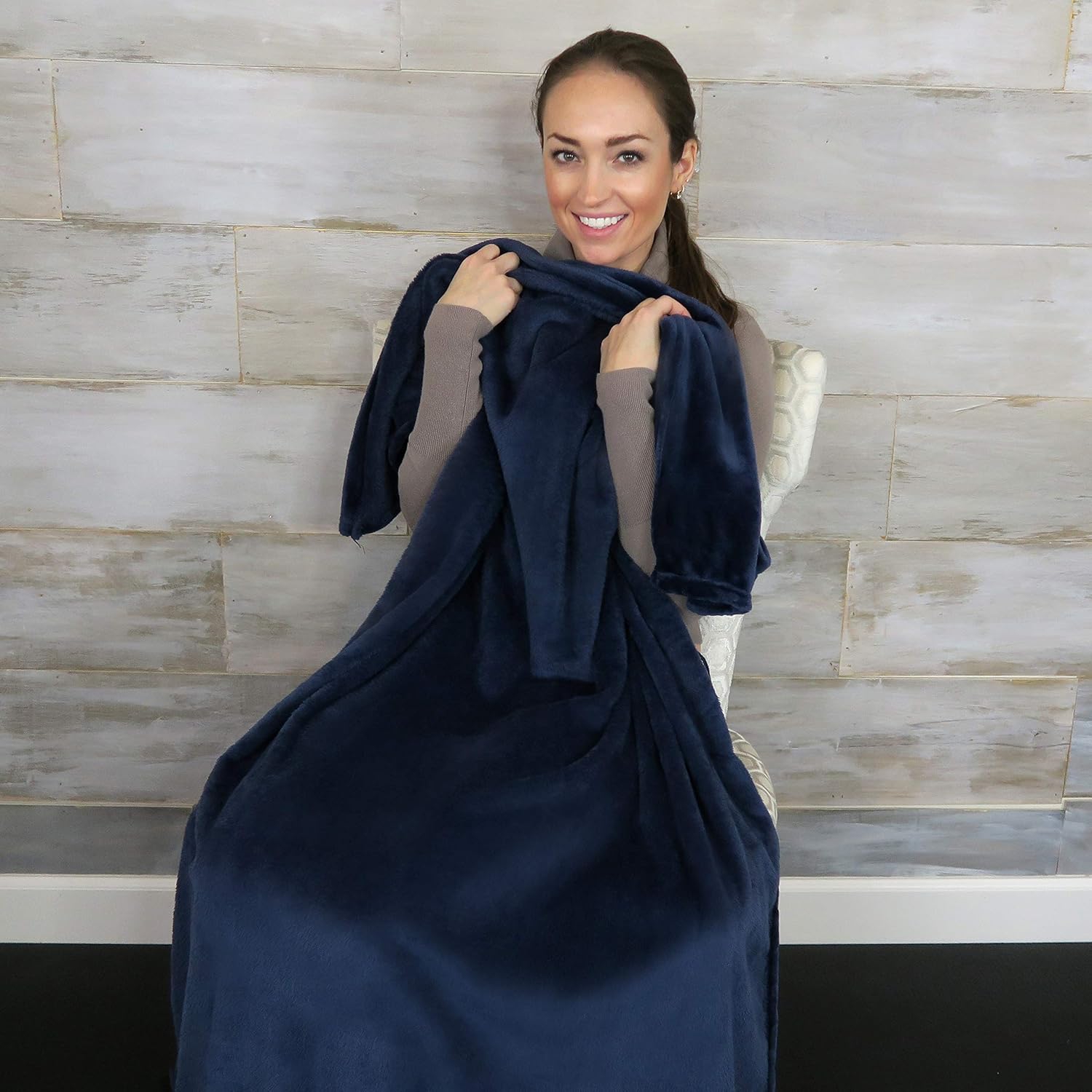 EverSnug Travel Blanket and Pillow - Premium Soft 2 in 1 Airplane Blanket with Soft Bag Pillowcase, Hand Luggage Sleeve and Backpack Clip (Navy Blue)