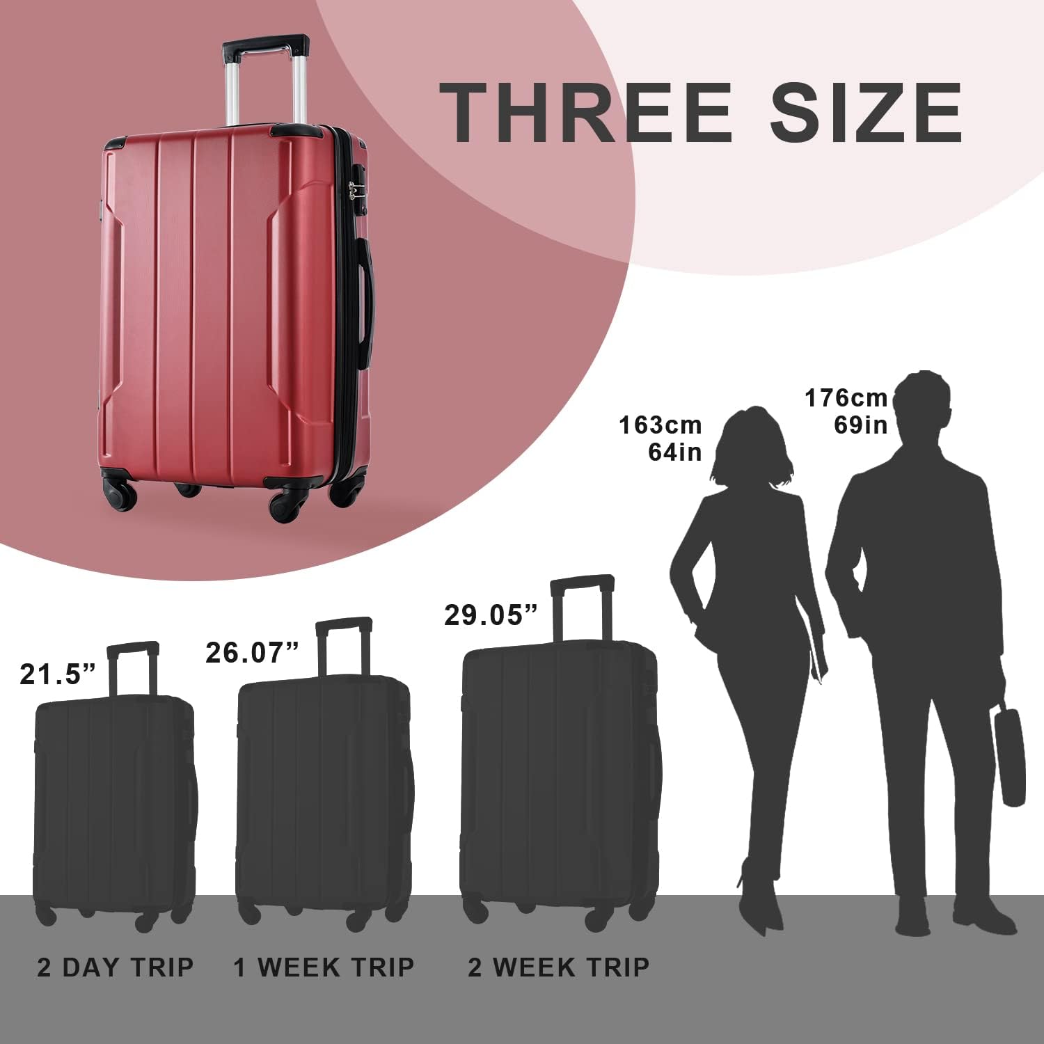 - 20 Inch Carry On, 24 Inch Checked-Medium and 28 Inch Checked-Large luggage can be neatly stored each inside the other. To comply with common carry-on size restrictions, the 20-inch suitcase is non-expandable and does not have side handles.