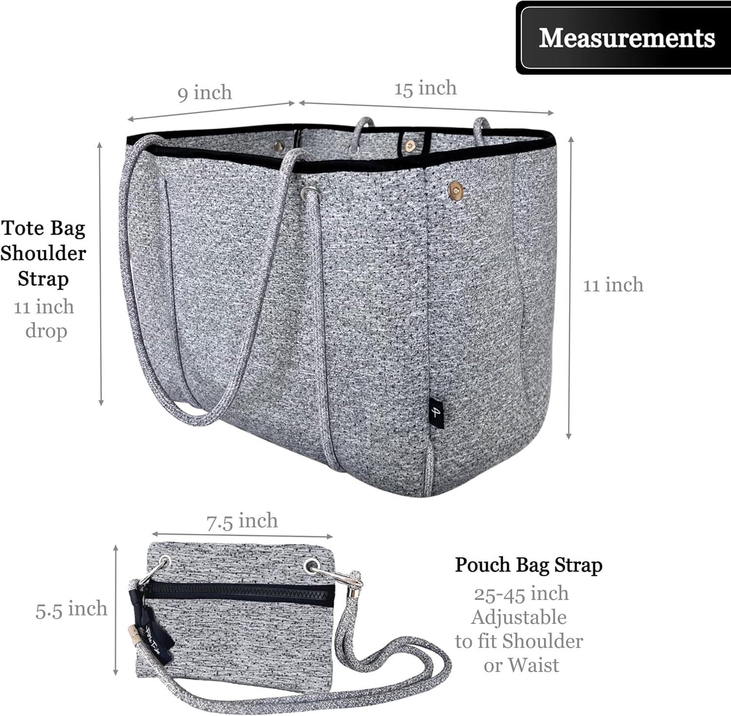 - STYLISH & COMFORTABLE: With its sleek design and a variety of colors, it's a stylish accessory for any outfit. The comfortable shoulder straps make it easy to carry, even when it's full. This Neoprene Tote is designed to be easy to use and includes a beautiful, detachable zippered clutch purse that is ideal for compartmentalizing valuables.