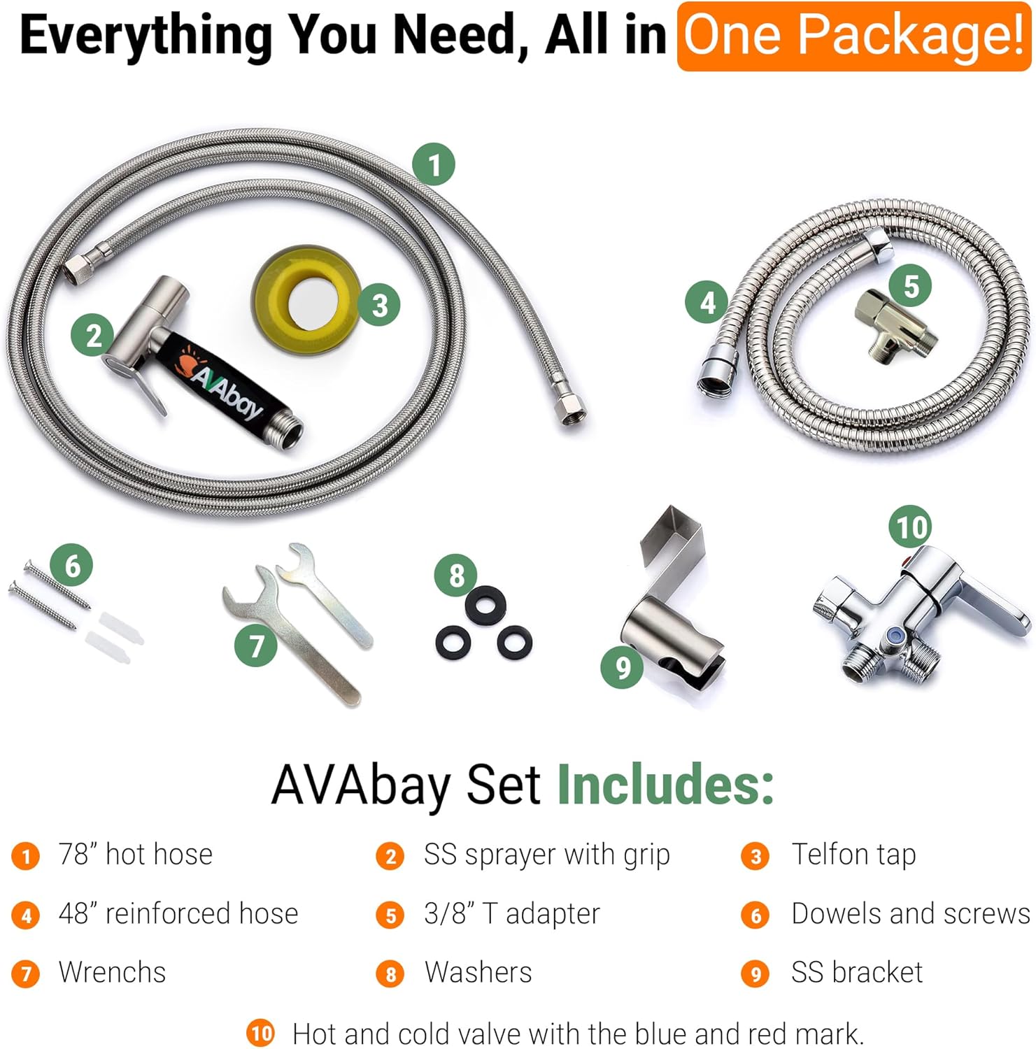 - Premium & Durable Stainless Steel Construction: Crafted with high-quality 304 stainless steel sprayer, brass components, and a robust, leak-proof hose for long-lasting performance.