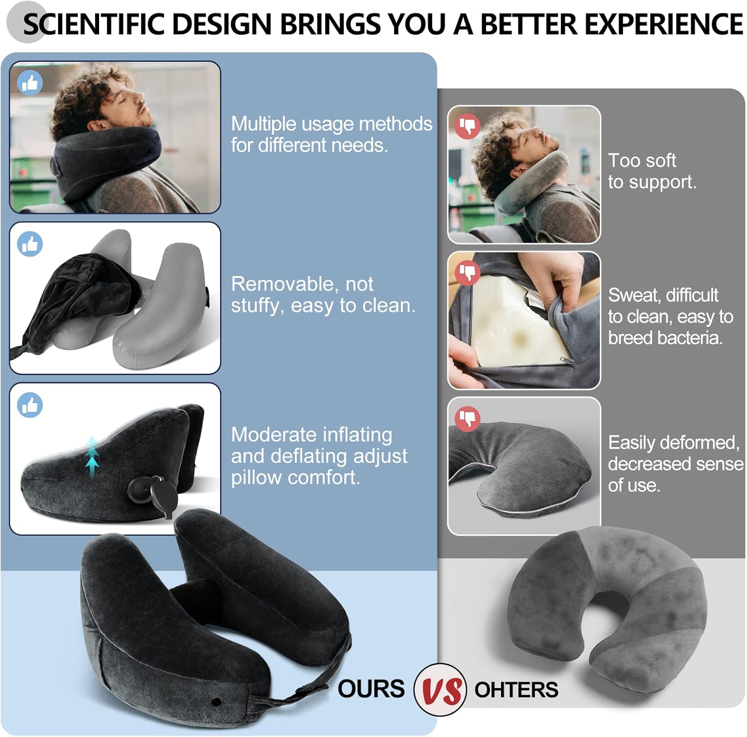 - ✈【Fast Filling】: The neck travel pillow can be inflated in 3 seconds without embarrassment in public. This patented valve maintains good air and does not leak for a long time. The most comfortable to relax if the travel neck pillow is blow up to 80-90%.