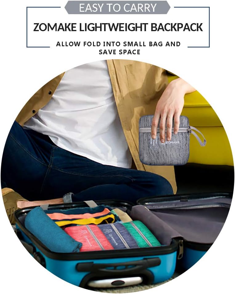 ZOMAKE 25L Ultra Lightweight Packable Backpack, Foldable Hiking Backpacks Water Resistant Small Folding Daypack for Travel(Medium Grey)
