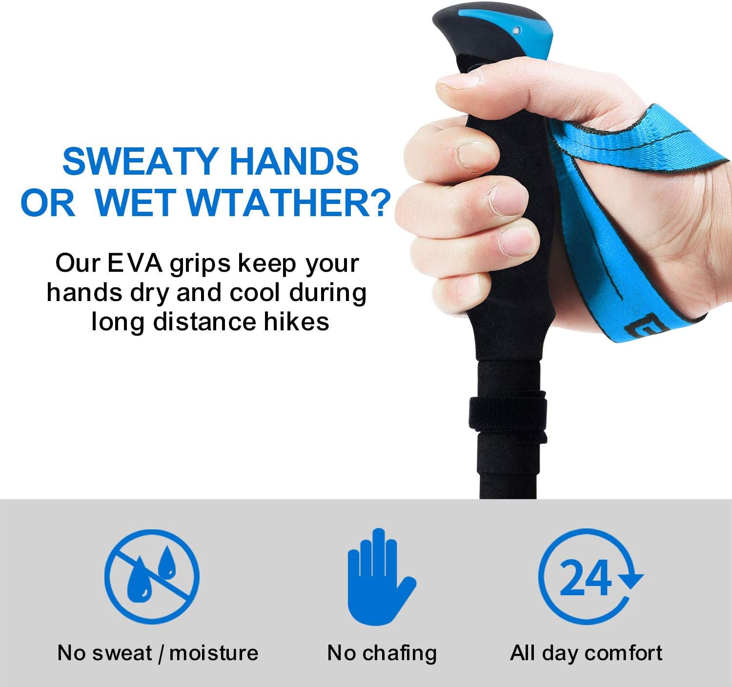 - 【BEST TRAVEL PARTNER】BISINNA trekking poles will absorb shocks and vibration, reduce fatigue and pain from your joints and muscles, prevent falls by dramatically improving your balance, and even help check that wobbly rock for stability before you step on it. If you are not completely satisfied with these trekking poles for any reason, simply contact us, we will help you solve the problem.Buy with no risk!