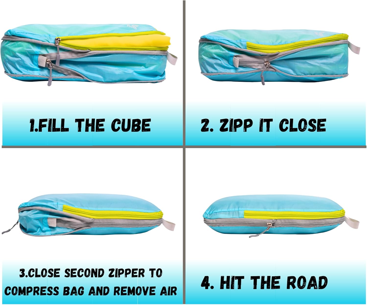 - Save that needed space and time while packing - double zipper compression system that vacuum the excess air from the cubes and makes them incredibly compact.