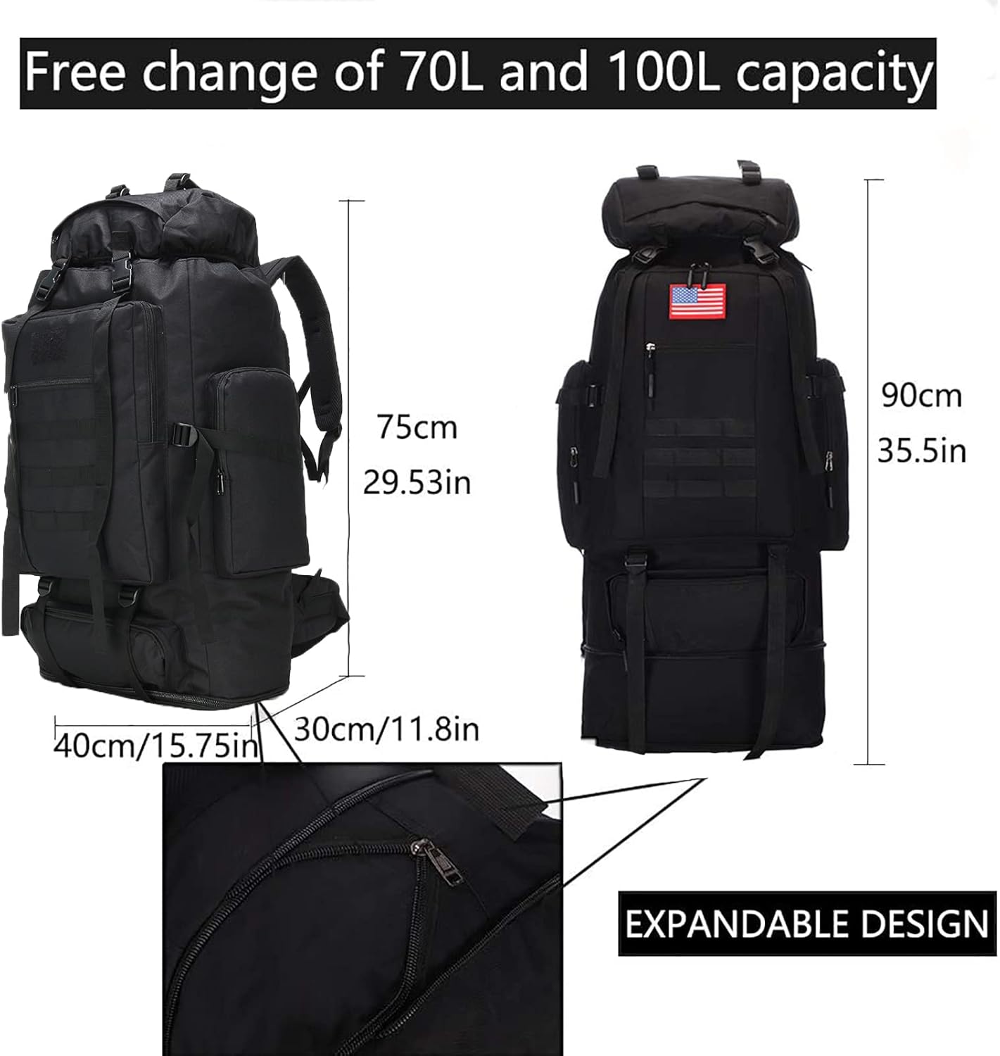 Hiking Backpack for Men 70L/100L Camping Backpack Military Rucksack Molle 3 Days Assault Pack for Climbing