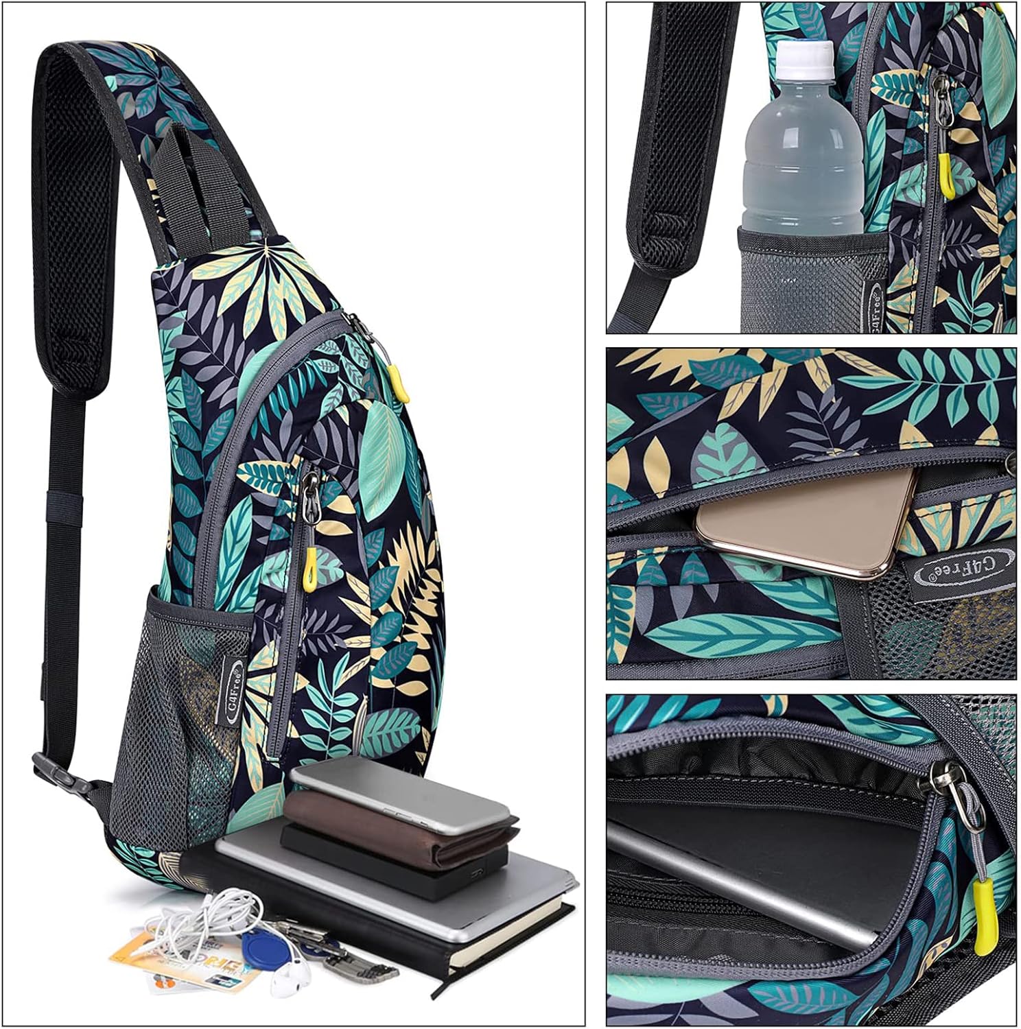 G4Free Sling Bag for Men Women, Small Crossbody Backpack Lightweight Chest Shoulder Bags for Travel, Outdoor and Sports (Blue Leaf)