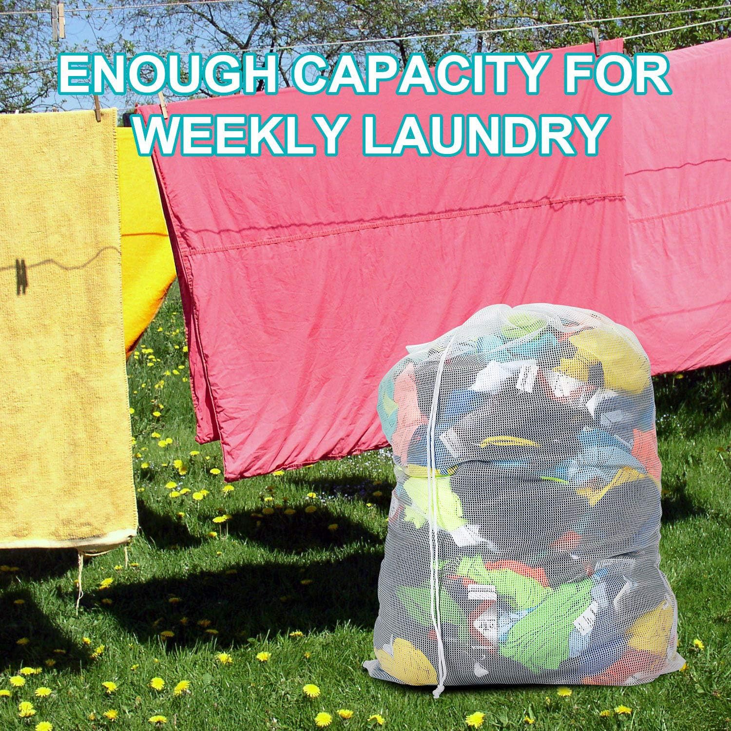 - Drawstring Closure & Well-Stitched Handle: Drawstring closure mesh laundry bags make sure that nothing lost on the road to the laundry room; When using it as a laundry liner bag, you can also tighten the drawstring closure to secure it to the laundry hamper; Attached reinforced-stitching fabric handle saves labor and makes the transportation easier; It can also save your space by hanging on the door knobs to collect dirty clothes