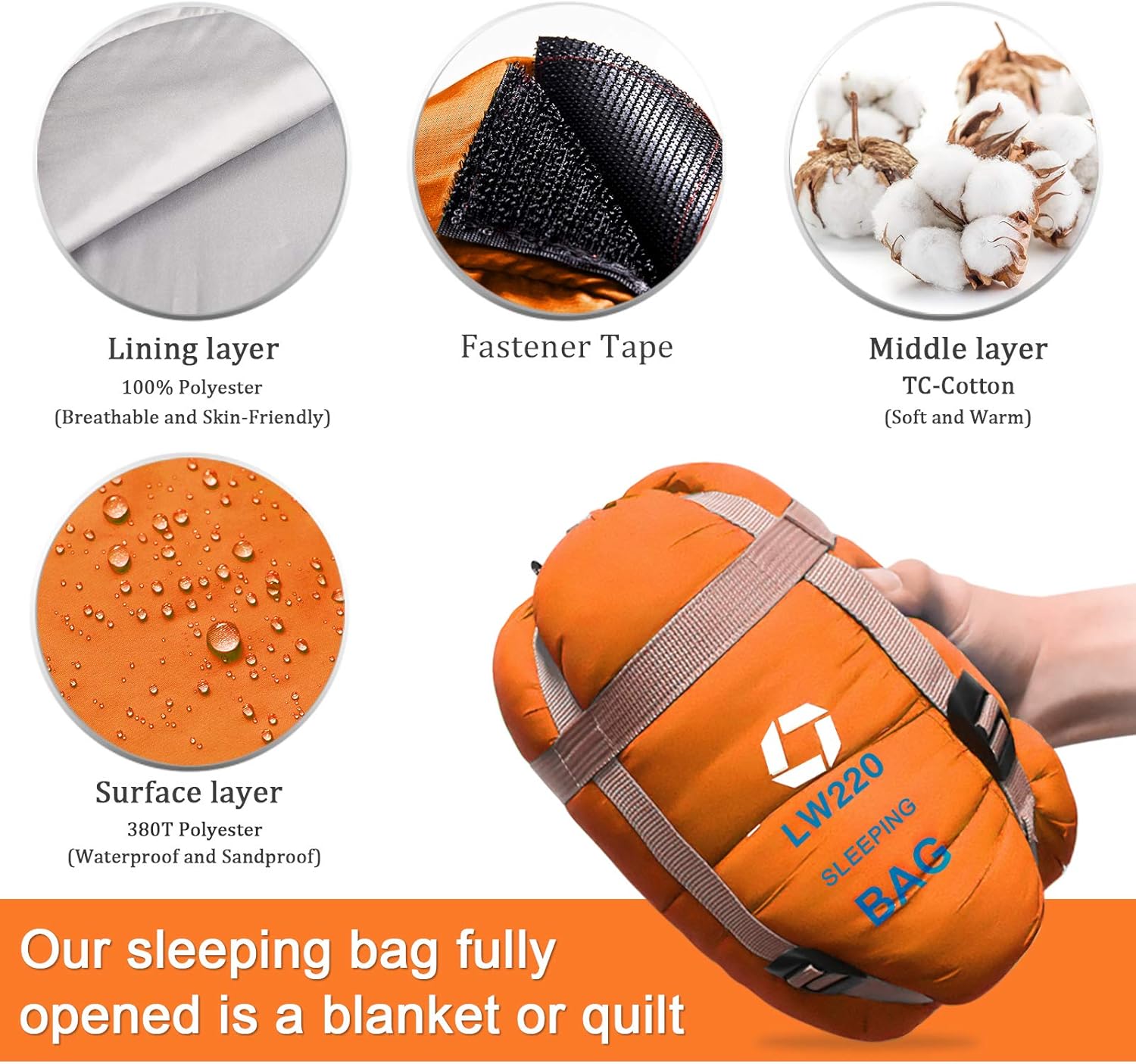 - 【MULTIPURPOSE VERSATILITY】You can use our warm weather sleeping bag without sleeping bag liner in multiple weather conditions. It's a perfect sleeping bag for Outdoor camping trips, Boy Scouts or mountain hiking,also works as camping comforter