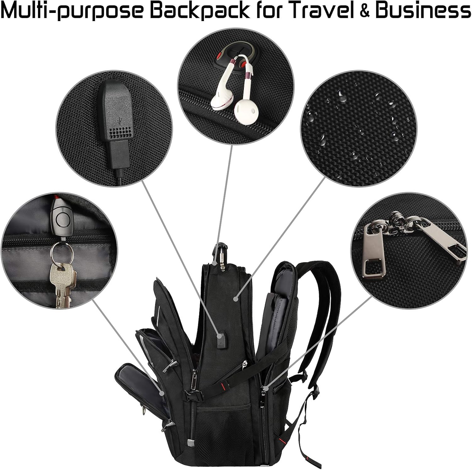 - USB Charging & Water-resistance: An external USB port with built-in charging cable makes it easy to charge your phone anywhere you go (POWER BANK IS NOT INCLUDED). Made of water-resistant, robust polyester fabric (not recommended for prolonged immersion), this work backpack for men can withstand harsh conditions and heavy use.