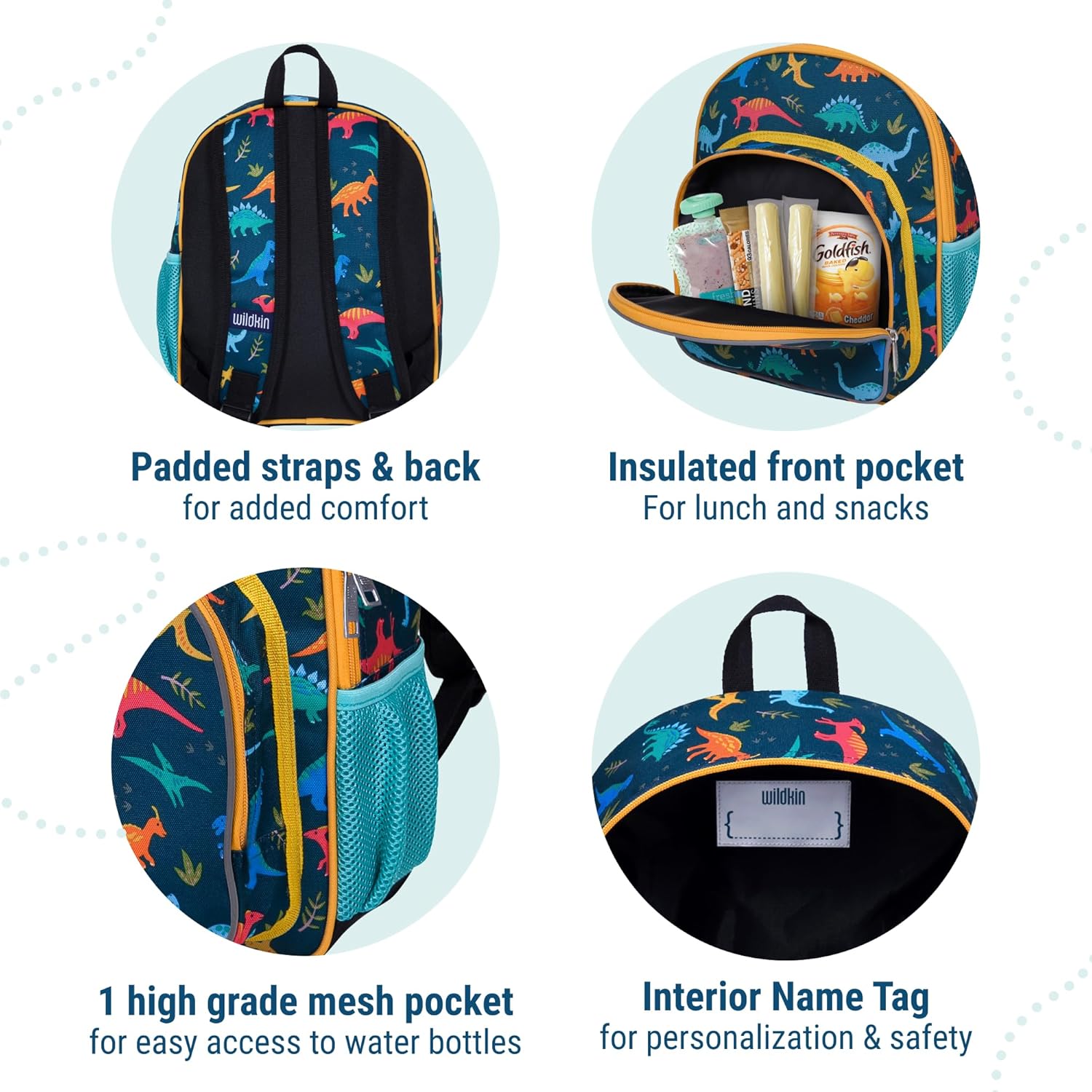 - Backpack And Lunch Box In One - With Wildkin’s school bag you don’t have to worry about weighing your little one down with a bulky lunch box. Keep snacks in the 12 Inch back packs insulated 9 x 8.5 x 2 inches front pocket.