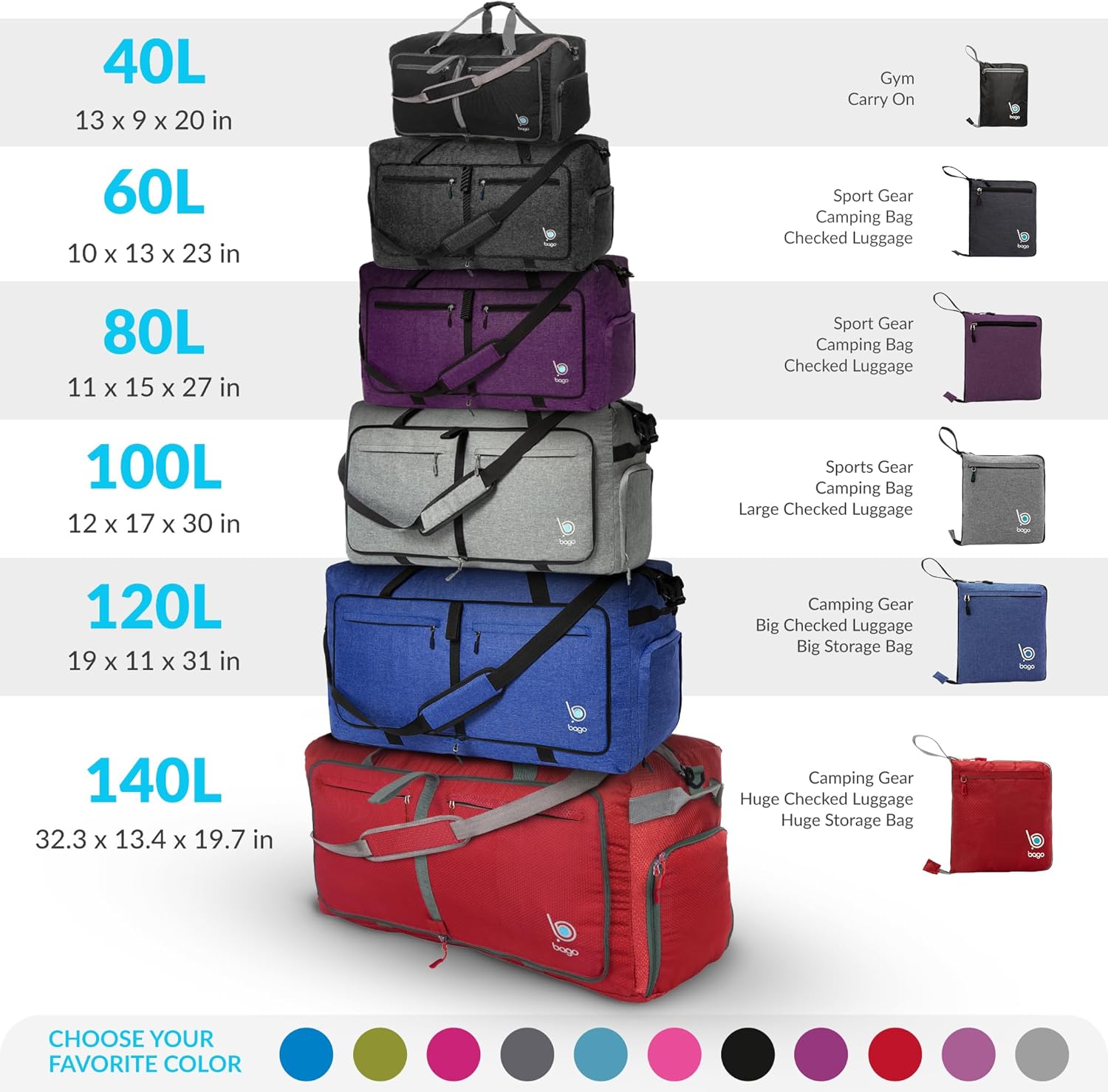 - RELIABILITY: Ideal as Gym Bag or Sports bag or football duffle bag for hauling sports gears or even for storage. Unfold at the airport to use as carry on to avoid excess baggage charges. A reliable carry on travel bags for women and mens.