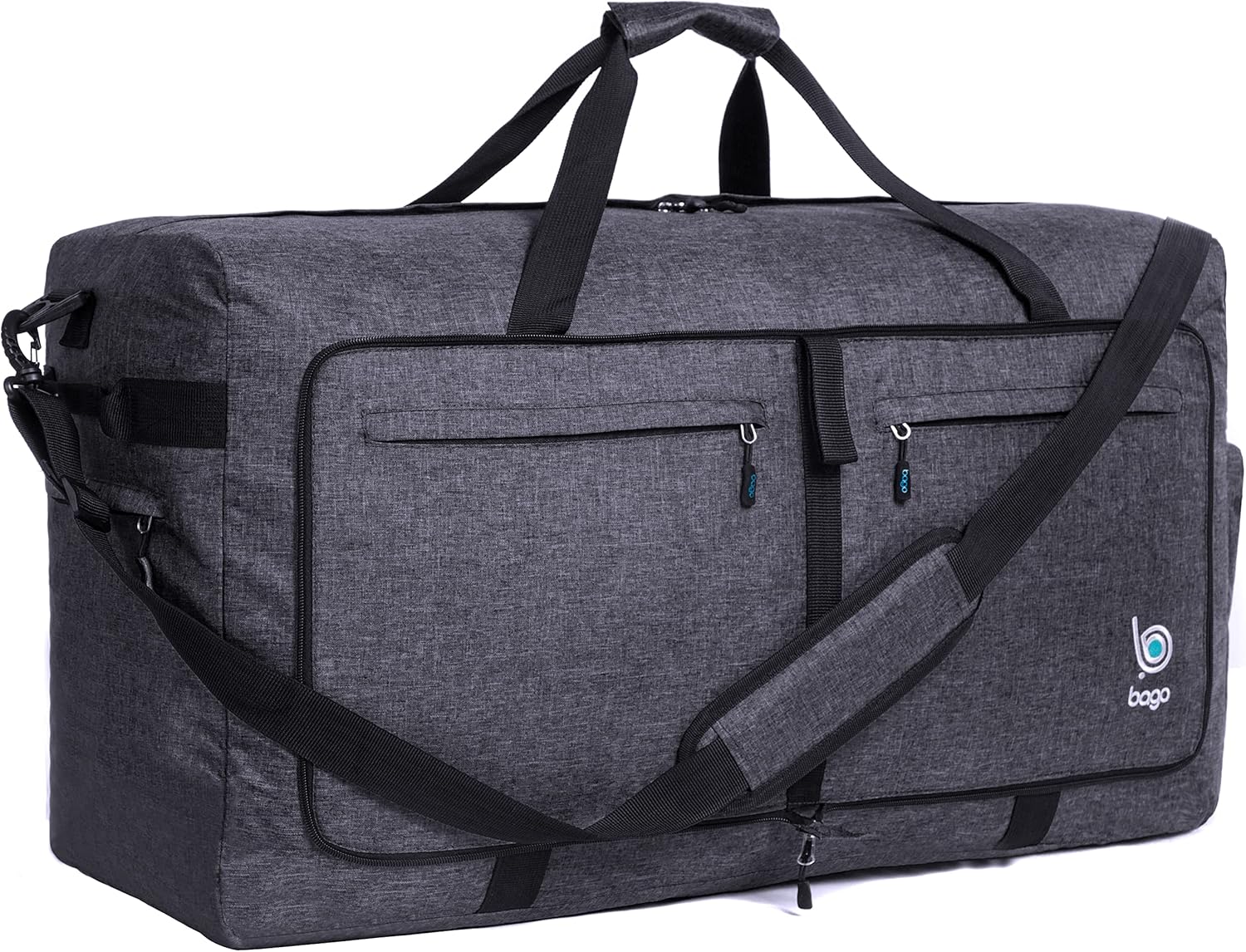 Bago Large Foldable Duffel Bags for Traveling Women & Men - 100L Packable Duffle Bag for Travel with Shoe Compartment - Water Repellant, Heavy Duty, Lightweight Folding & Collapsible (SnowBlack)