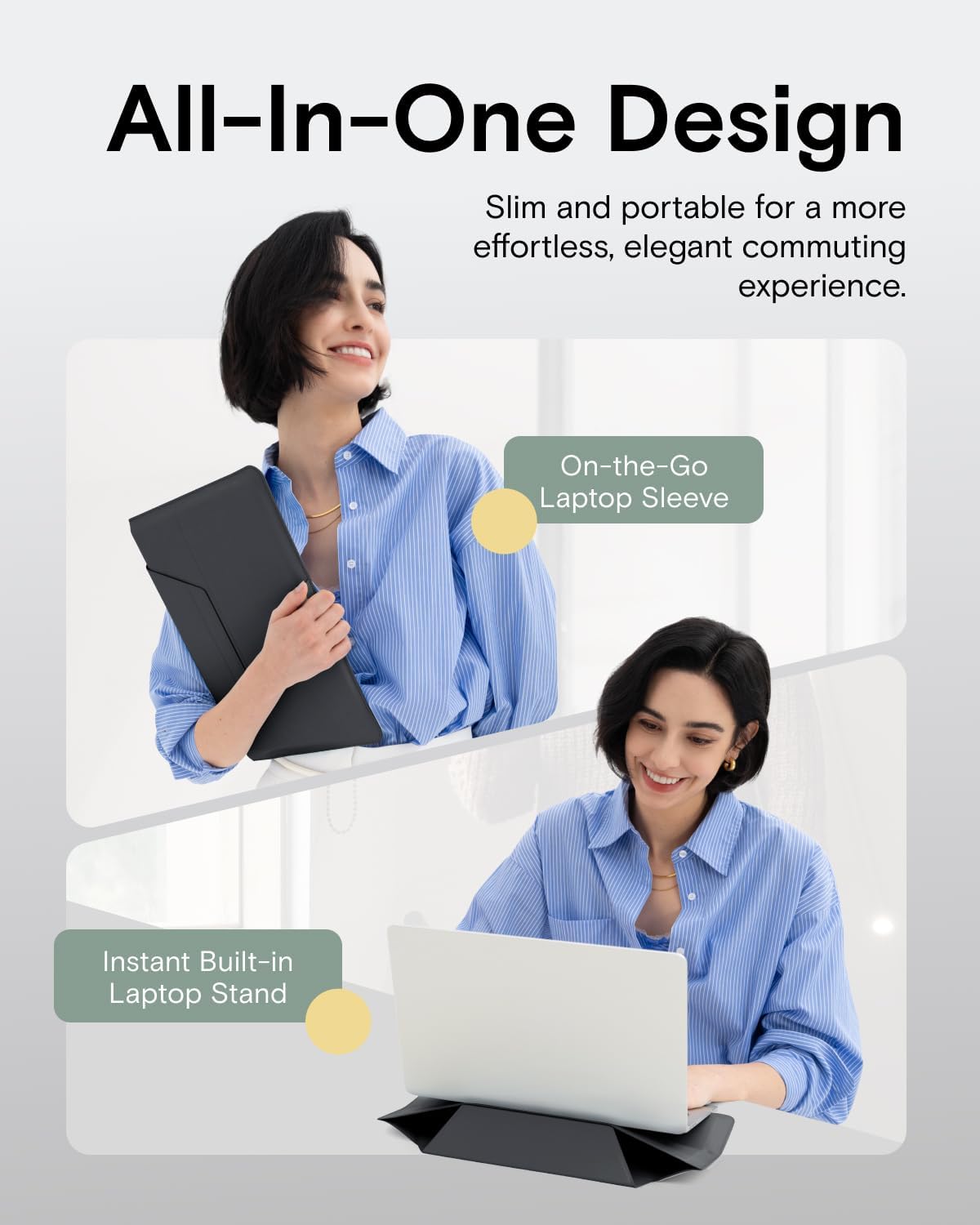MOFT Laptop Carry Sleeve, 2-in-1 Laptop Bag & Stand for 16" MacBook Air/Pro & Dell/HP/Lenovo/Asus, Stylish Slim Computer Sleeve Bag with Expandable Storage for Computer Accessories, Night Black