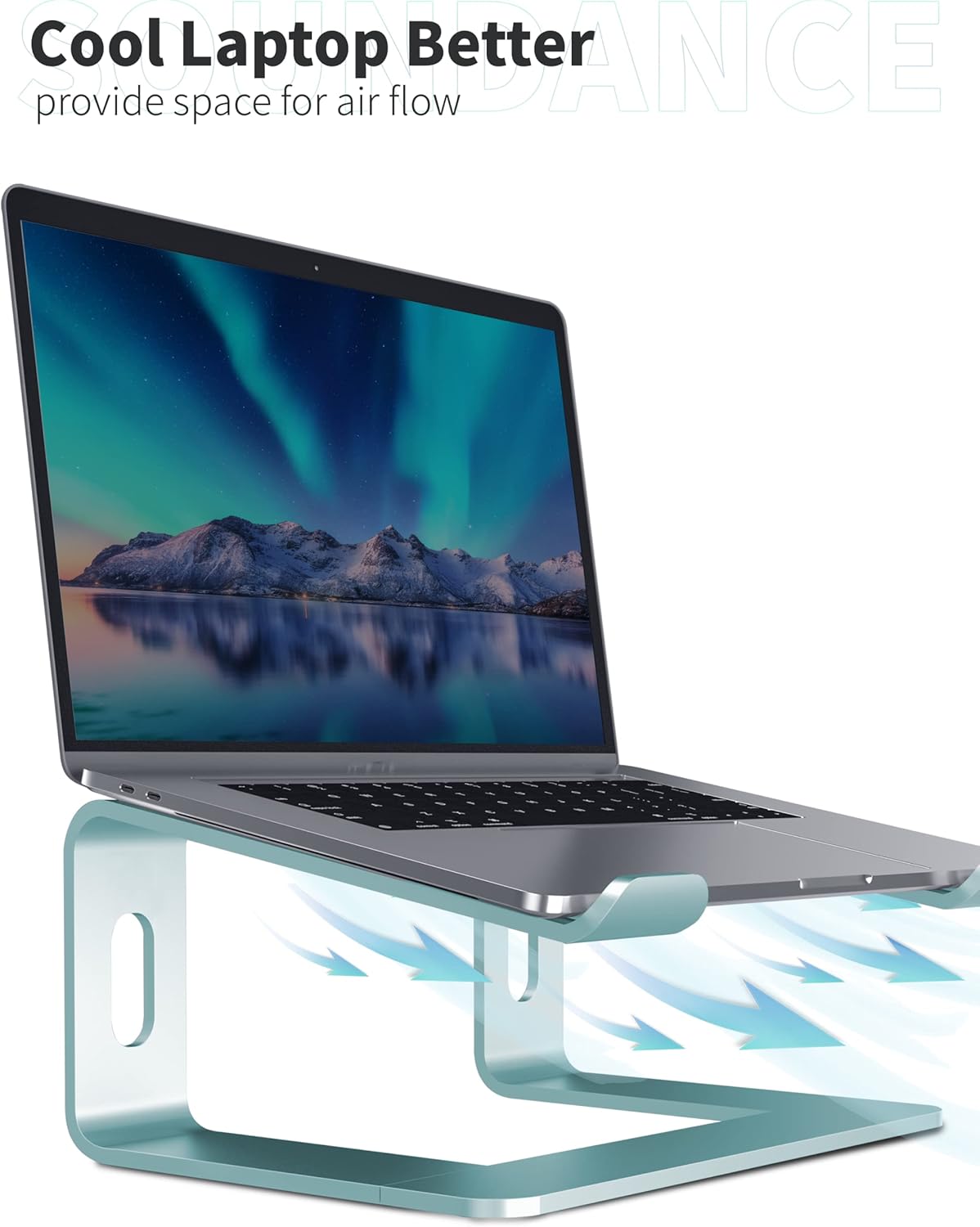 SOUNDANCE Laptop Stand, Aluminum Computer Riser, Ergonomic Laptops Elevator for Desk, Metal Holder Compatible with 10 to 15.6 Inches Notebook Computer, Aquamarine
