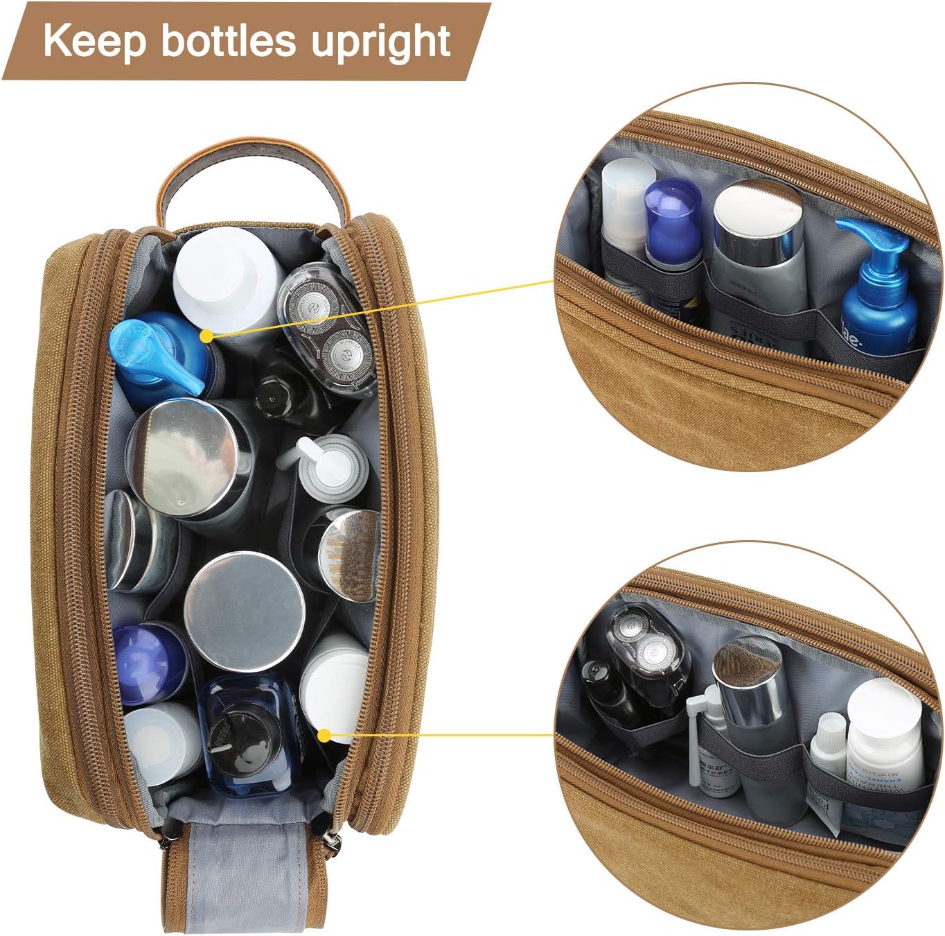 BAGSMART Toiletry Bag for Men, Canvas Travel Toiletry Organizer Dopp Kit Water-resistant Shaving Bag for Toiletries Accessories,Khaki-Medium