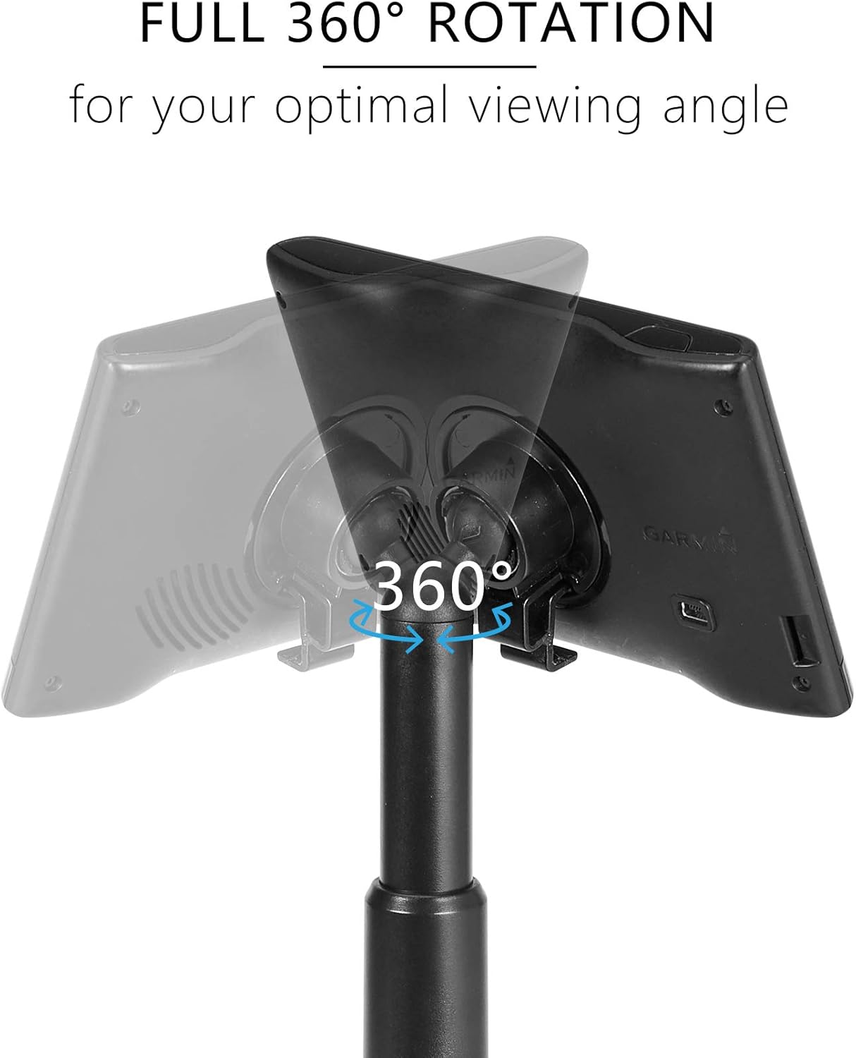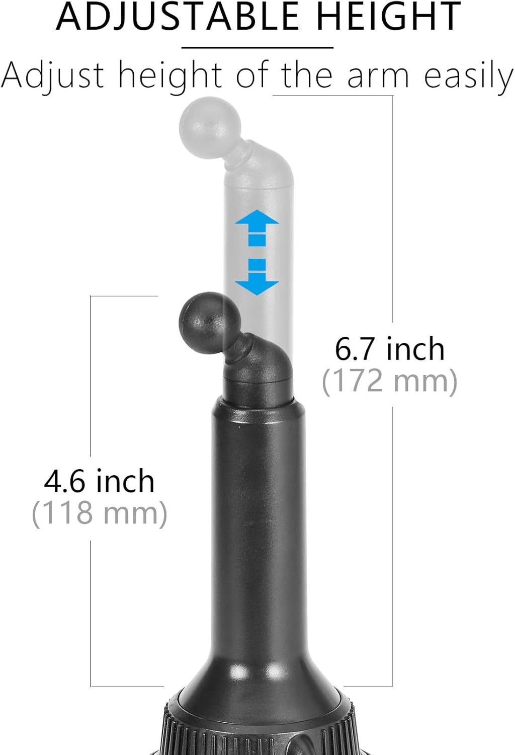 - Sturdy Rough Rod Mechanism: It has a solid 1 inches tough rod that allows it to stand up steadily in the cupholder. No more annoying screws are needed, just pull and push to adjust the height for easy operating and access to your GPS. 360° rotatable