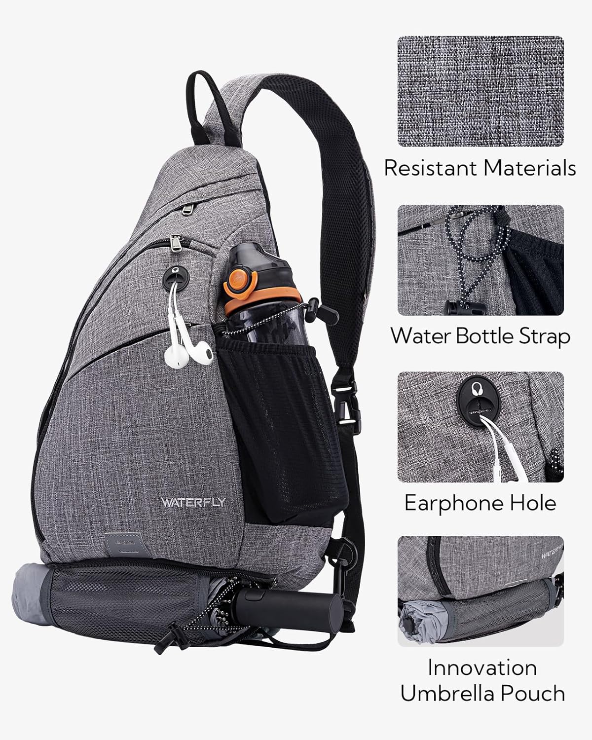 WATERFLY Large Crossbody Sling Bag: Over Shoulder Backpack Daypack Casual Cross Chest Side Pack