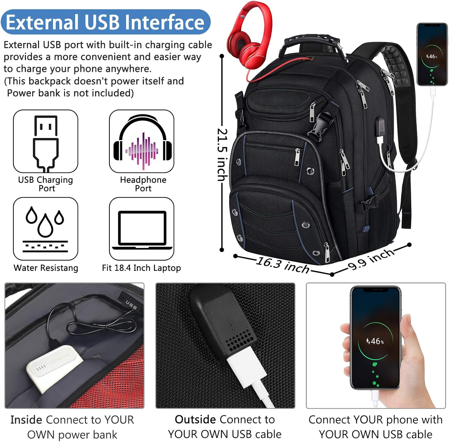 18.4 Laptop Backpack for unisex, 55L Extra Large Gaming Laptops Backpack with USB Charger Port,TSA Friendly Flight Approved and RFID Anti-Theft Pocket