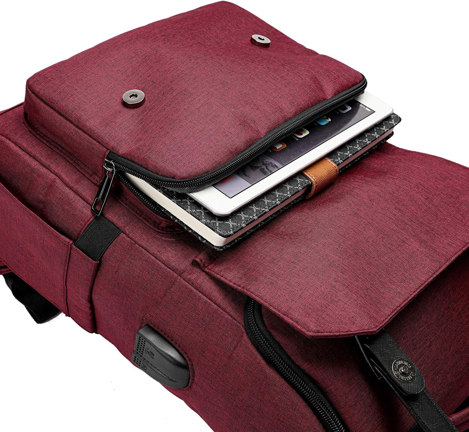 YALUNDISI Vintage Backpack Travel Laptop Backpack with usb Charging Port for Women & Men College Backpack Fits 15.6 Inch Laptop Red