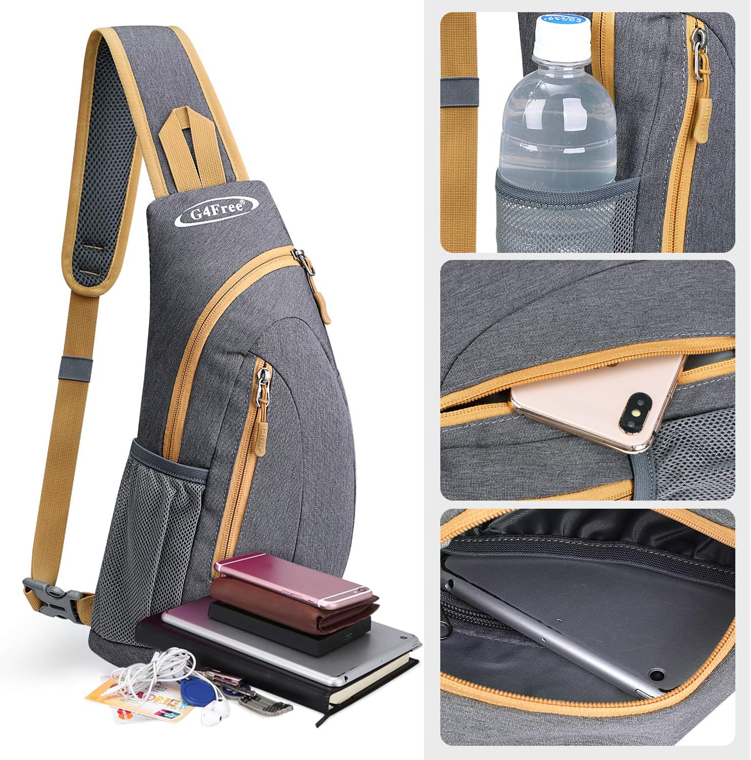 G4Free Sling Bag for Men Women, Small Crossbody Backpack Lightweight Chest Shoulder Bags for Travel, Outdoor and Sports (Grey Yellow)