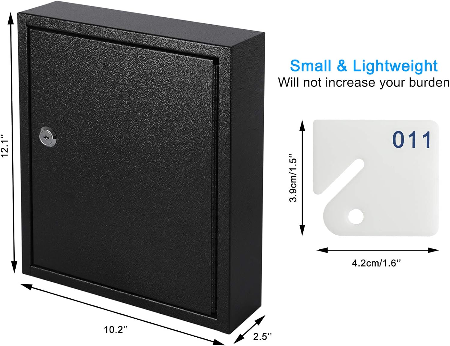- KEY STORAGE BOX : Keep keys security Key lock box includes 60 key rings, identification tags, and a key labels. Size: 2.5"D x 10.2"W x 12.1"H